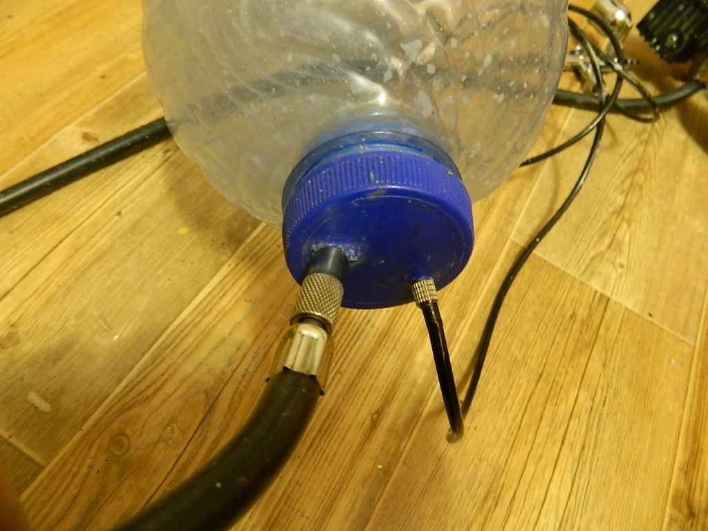 5-ти литруху как-то стремно надувать, тем более дрелью. Когда-то подобным образом использовал 2-х литровую от кваса (она, в отличии от 5-ки, рассчитана на высокое давление) и автомобильный компрессор. Компрессора максимум хватало на 5,6 атмосфер, потом захлебывался, а дрель-то помощнее будет. Как бы не разорвало...