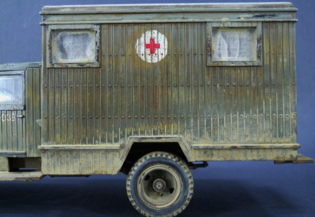 прототип:ЗИС-44 – санитарный автомобиль, выпускавшийся на базе ЗИС-5В.Снабжался упрощенным прямоугольным деревянным кузовом многоцелевого применения с одной боковой, двумя задними дверями и крышей, оклеенной крашеным брезентом. Автомобиль служил для перевозки четырех (по другим данным – 7) больных на носилках или 18 сидячих раненых.