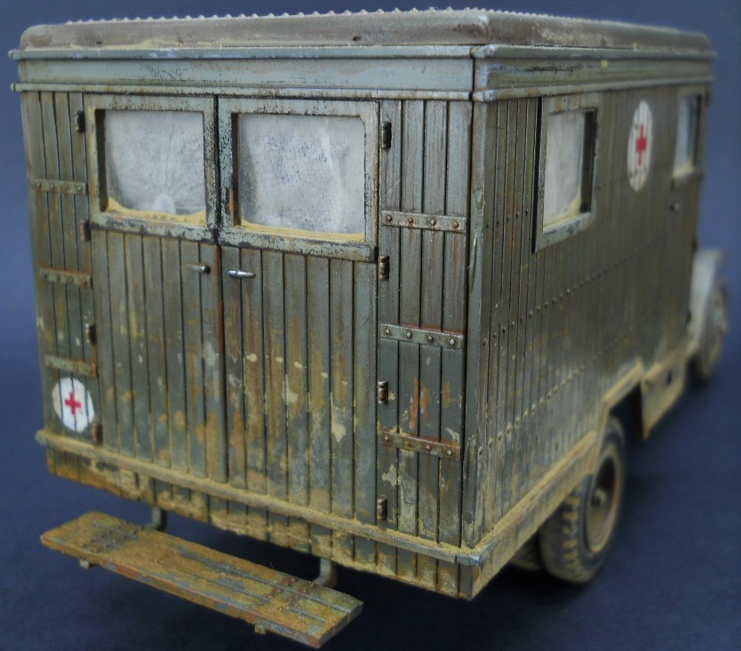 читал в одном из справочников санитарных автомобилей что на Зис-44 была одна дверь задняя и два боковых окна по сторонам...(как на ранней версии ГАЗ 03-30)