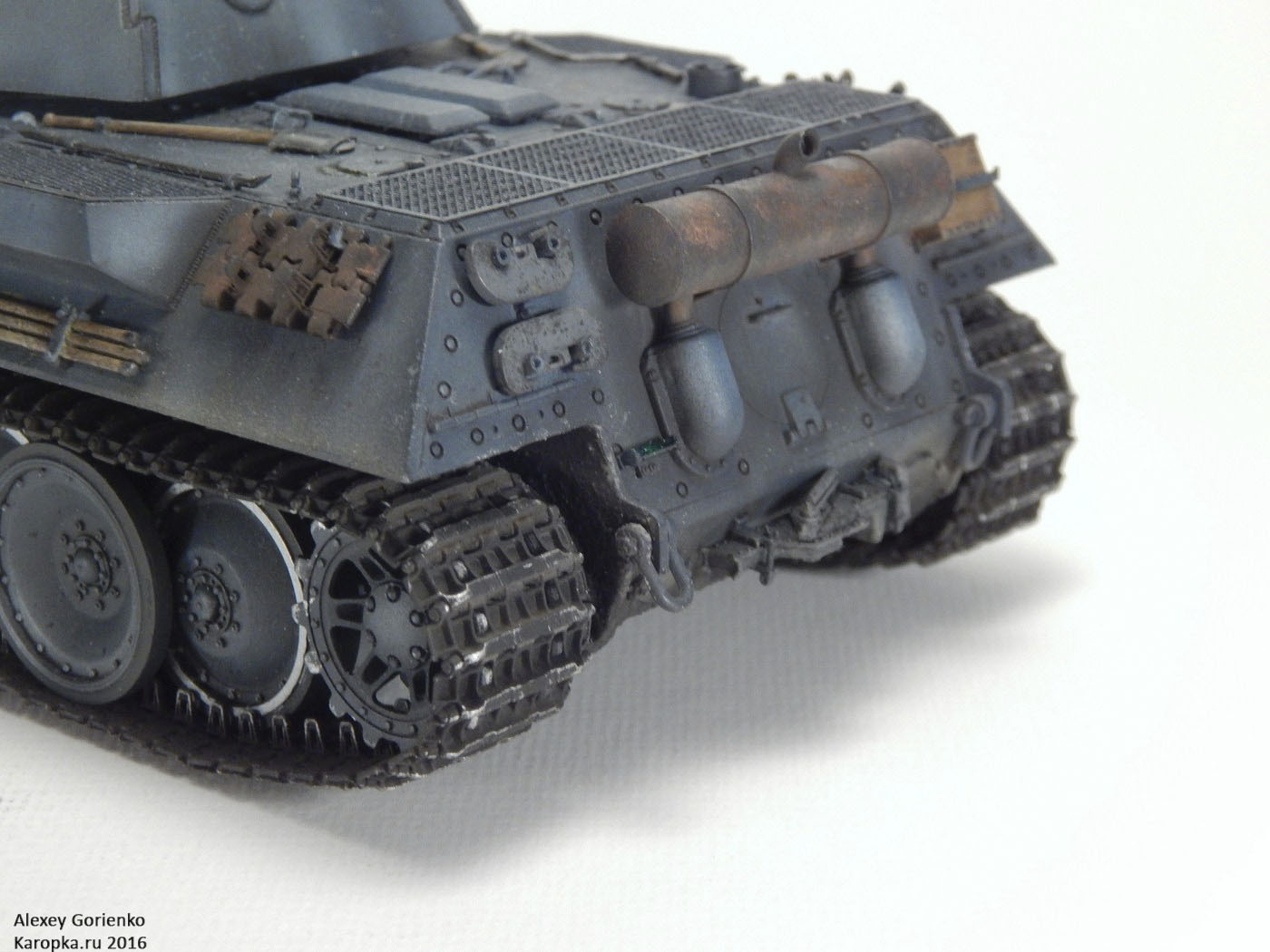 Разумеется, я не мог пройти мимо и несколько доработал модель. Помимо этого, я занялся в принципе бессмысленным делом - попытался привязать несуществующему танку существующую матчасть, и изобразил прототип таким, как если бы он пошел в серию вместо Пантеры, по ее стопам. Так что протитипу были приданы признаки модификации ausf A Пантеры, разумеется, с учетом имеющихся доступных в наборе лишних деталей.