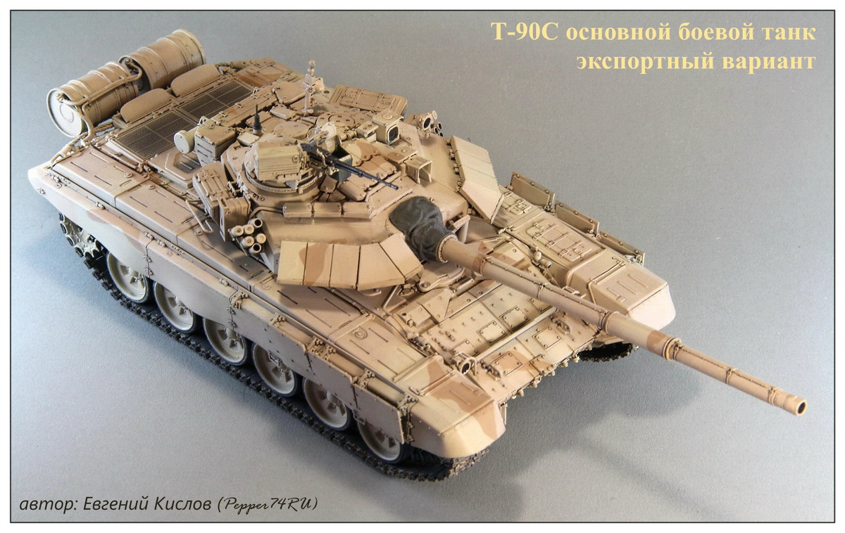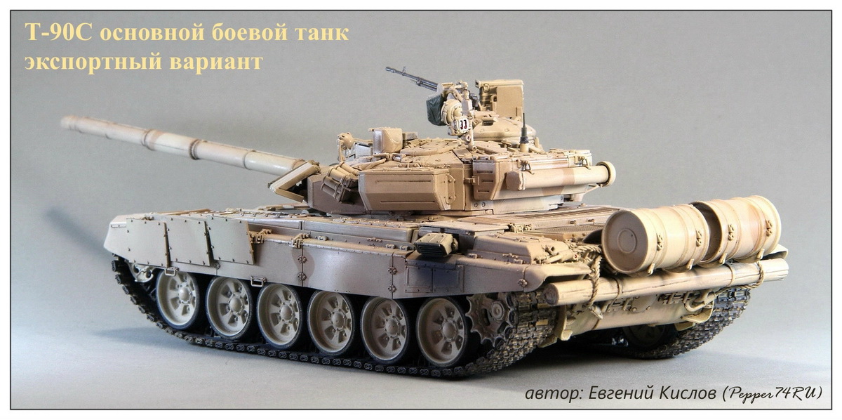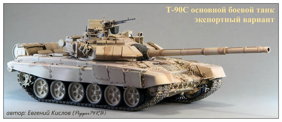 Вчера закончил очередную модель. Срок на изготовление был ограничен(с 14 января до 1 февраля), модель делал на заказ для моего хорошего знакомого Gur Khan. За основу был взят набор Т-90А от Mенг, можно было взять и Tрамповский, но хоть они и делают Т-90С там тоже много дорабатывать нужно. А Менг приятнее в сборке. Также использовал некоторые допы от "Magic Models" .