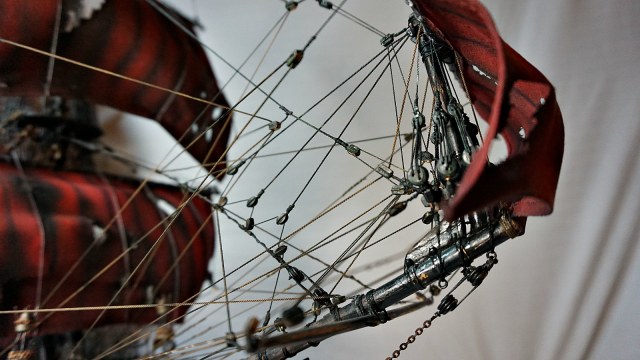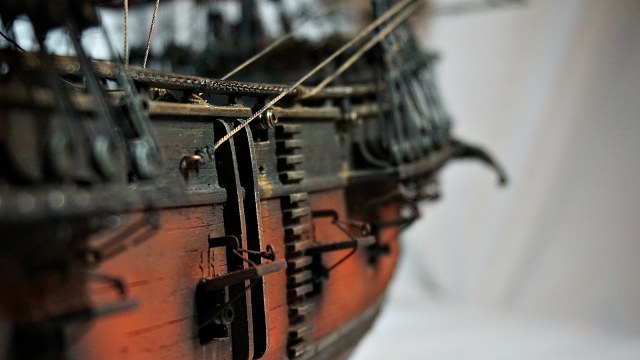 ну, уже лучше. Над композицией кадра надо работать, но хотя бы теперь детали видны стали. Молодец. Сложная модель. Видно, что старался изо всех сил. Смелости не занимать, так что пили дальше с утроенным усердием. И собери троссомот. Без него нормальной модели корабля собрать нельзя