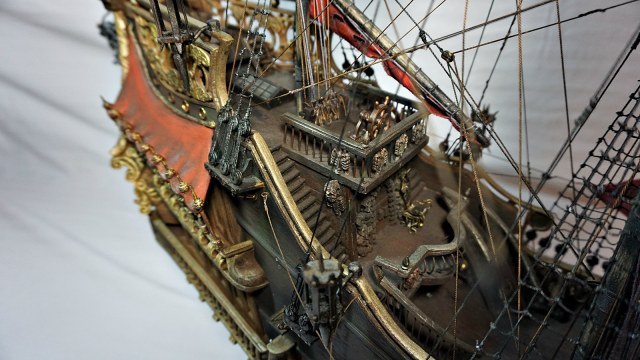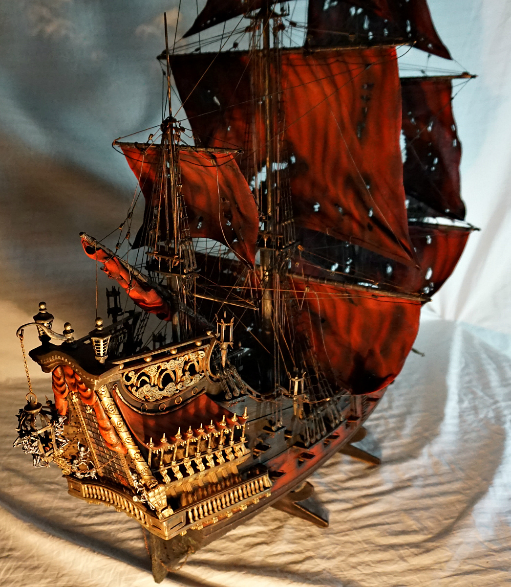 Согласен. Дело в том что строя корабль я испытывал огромное удовольствие можно сказать погружался в пиратский мир. Наверняка если создание элементов механизировать, поставить на поток если можно так сказать, часть душевности потеряется( Кстати кормовую штору пришлось переделывать несколько раз, и как я не старался нужного результата не вышло( в итоге терпение закончилось.