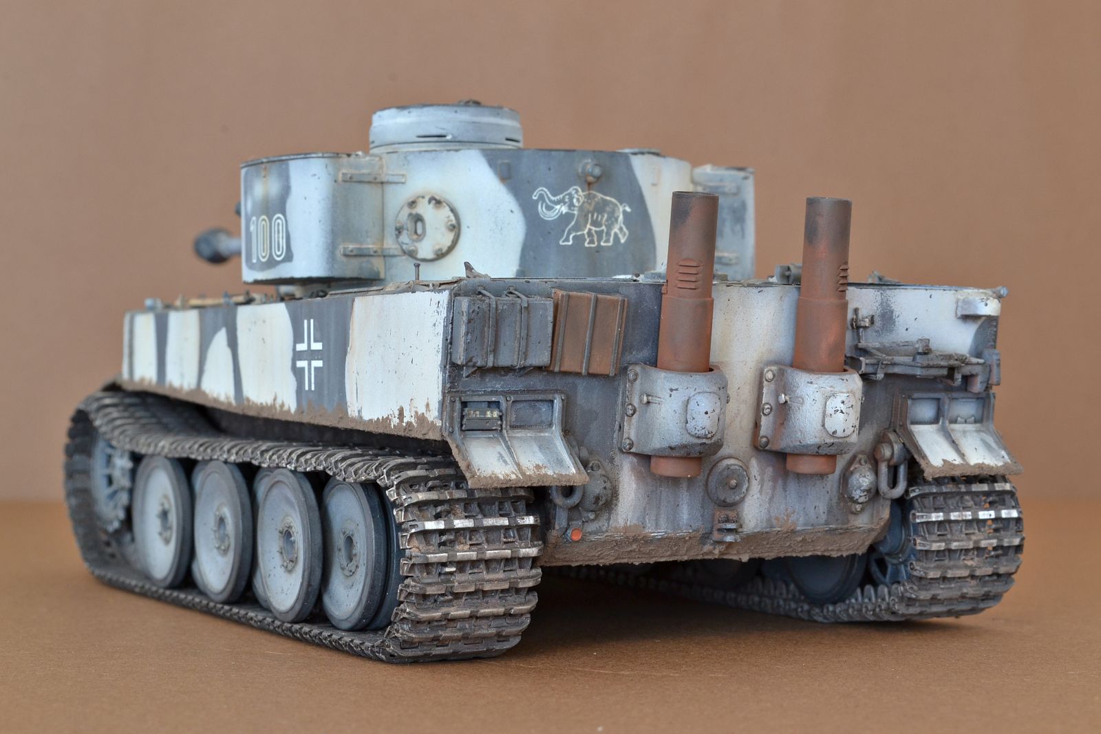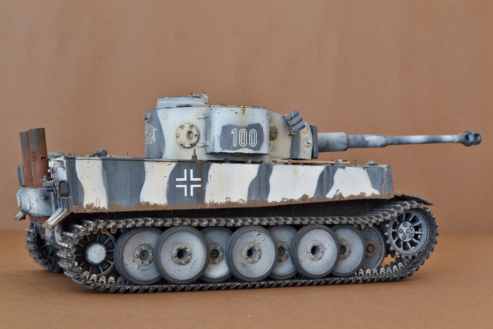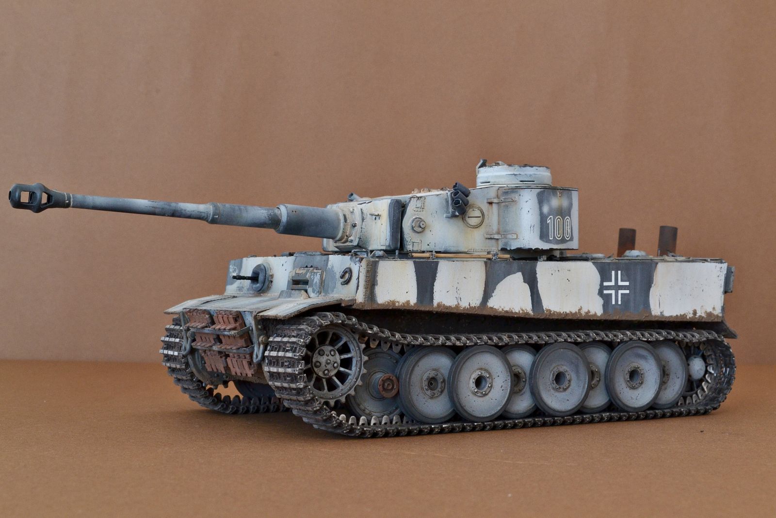 Привет всем! Отличный набор, легендарный прототип, возможно очень массовая модель, но я посчитал, что "сотый" Тигр inital серии обязательно должен быть у меня в коллекции. Набор дополнен металлтраками от Мастерклаба, катки заменены на Тамиевские, как более копийные именно для этой модели. По самой модели очень доволен качеством набора, лишь "обварил" корпус, проводка, да несколько добавленных гаек. Решил сделать в зимнике, красил Тамией, смывка Тамия и зимняя Zip- маркет. Не хотел на этот раз грязнить, но не удержался помазал, наверное зря.. Приятного всем просмотра!