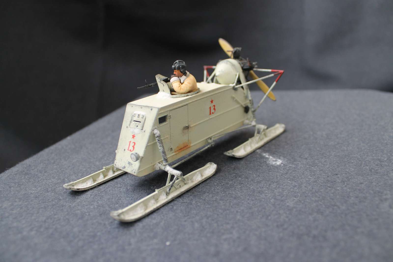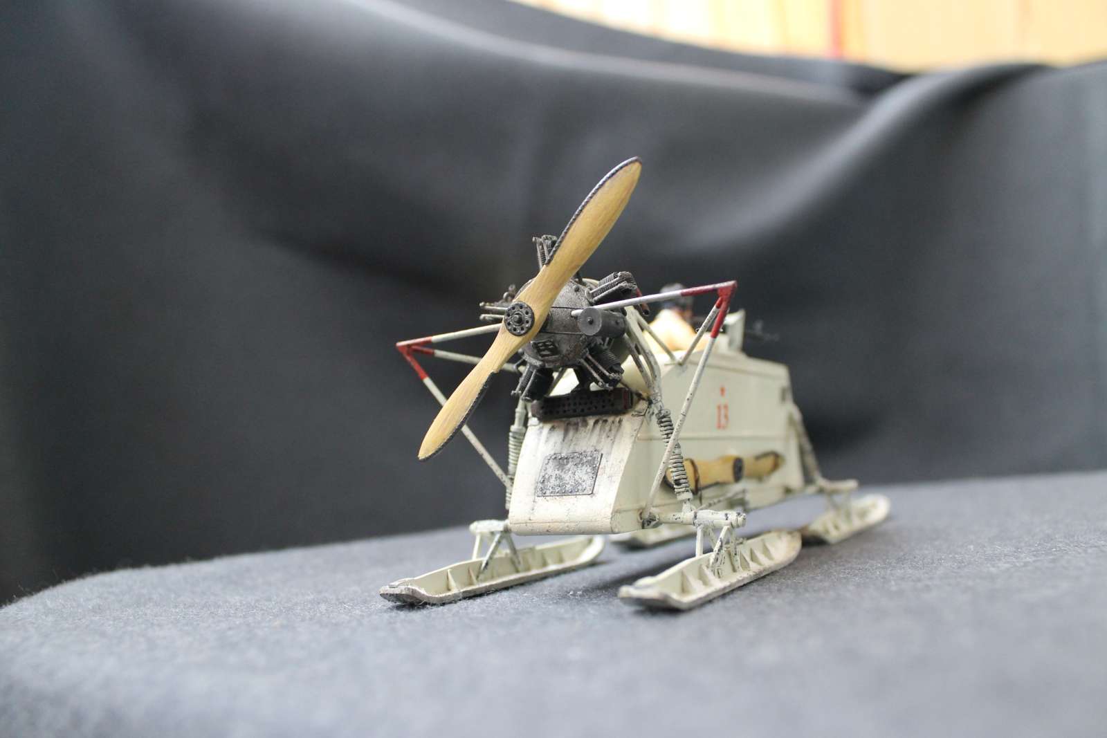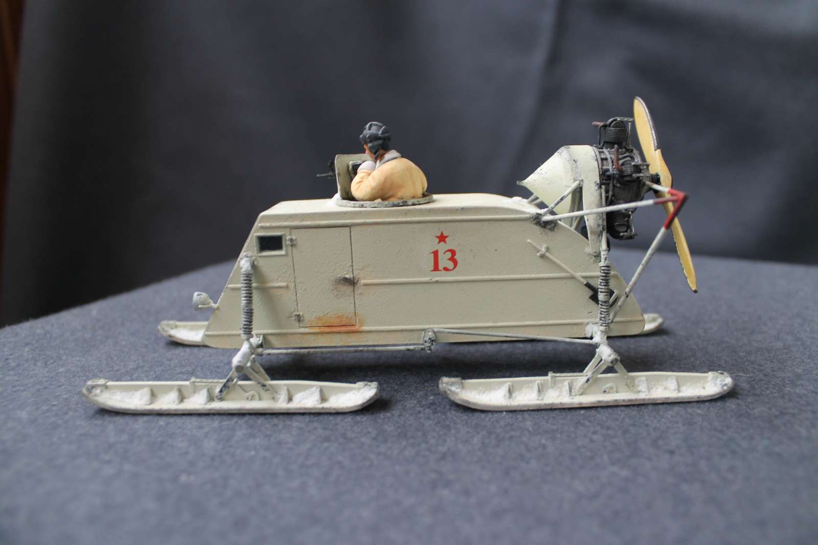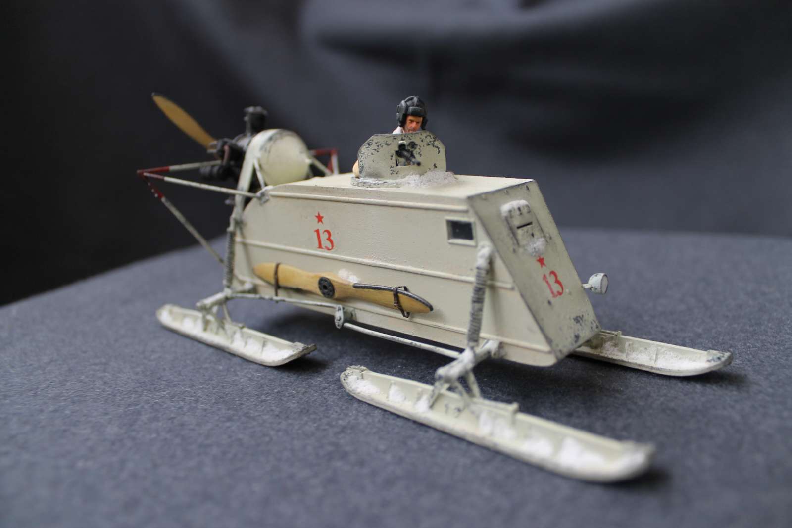 Нет, корпус саней первых серий был фанерным, за исключением лобового листа.Это я пытался изобразить следы грязного снега и просто грязи, которые неизбежно таскаются на сапогах в оттепели.