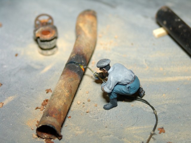 Потрясающая работа! Настолько все классно и достоверно сделано. Блин, даже кабель( электрики или связисты) через теплотрассу идет, как это и бывает не редко. И печка стоит наверное для замазки швов. Единственно непонятен момент с новой трубой. На ней похоже ВУС- изоляция, а была ли такая в 60х- 70х?