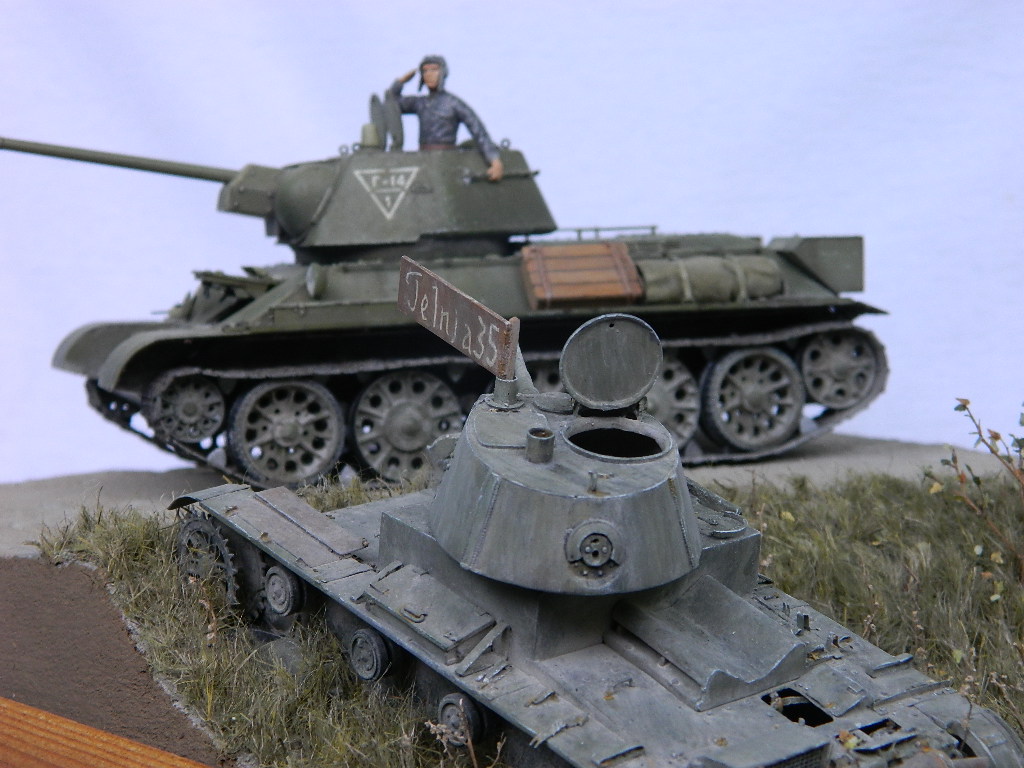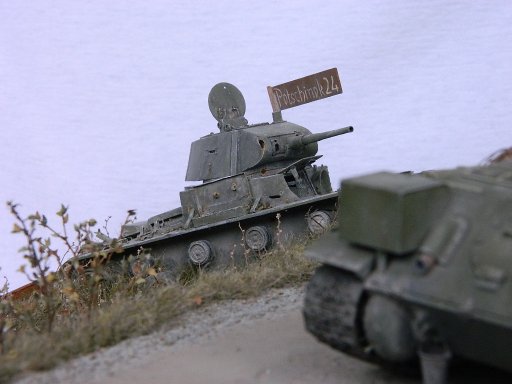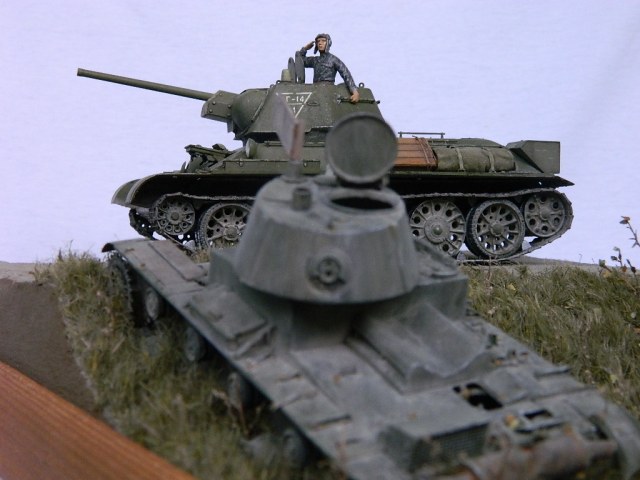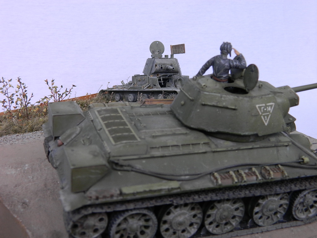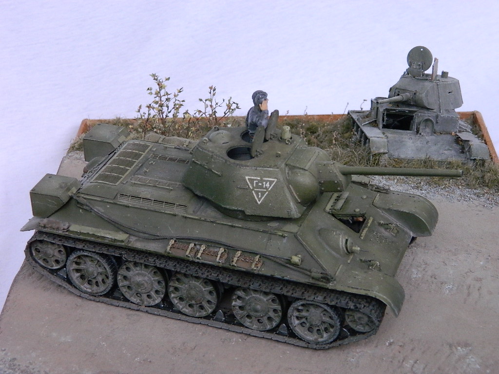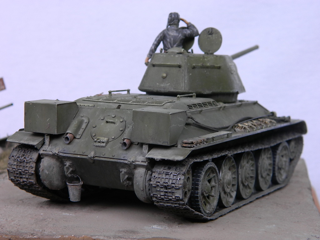 ...Хорошее исполнение,правда смущает отсутствие каких-либо признаков дороги под гусеницами Т-34/76.
