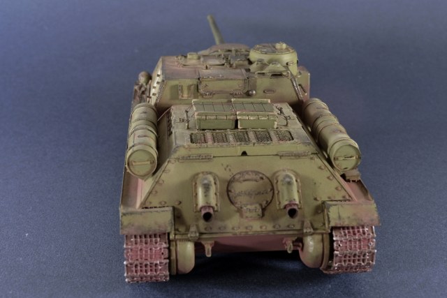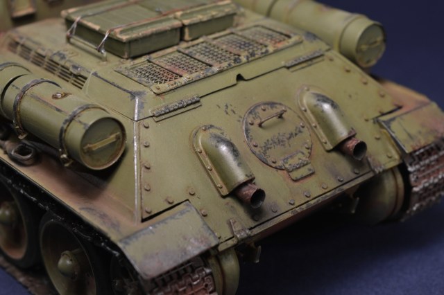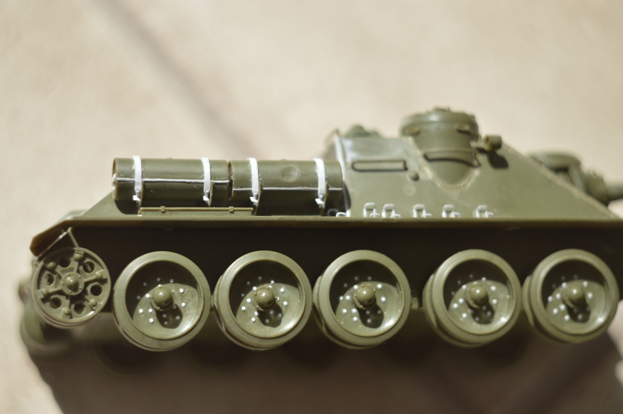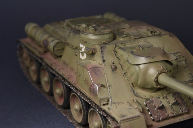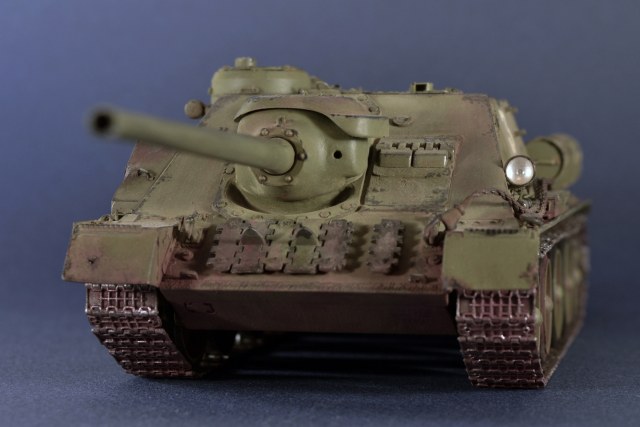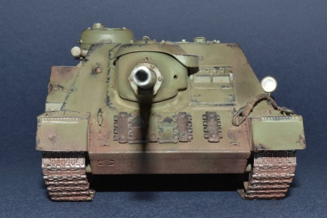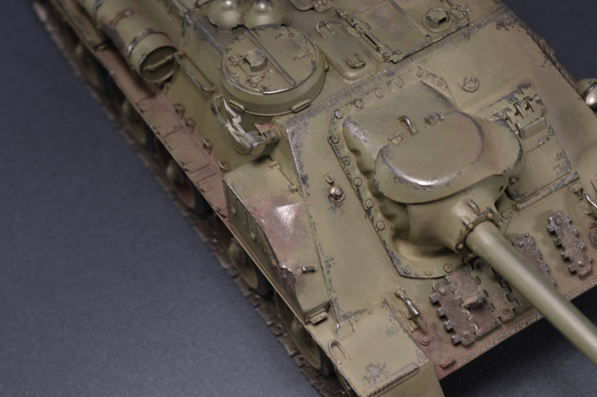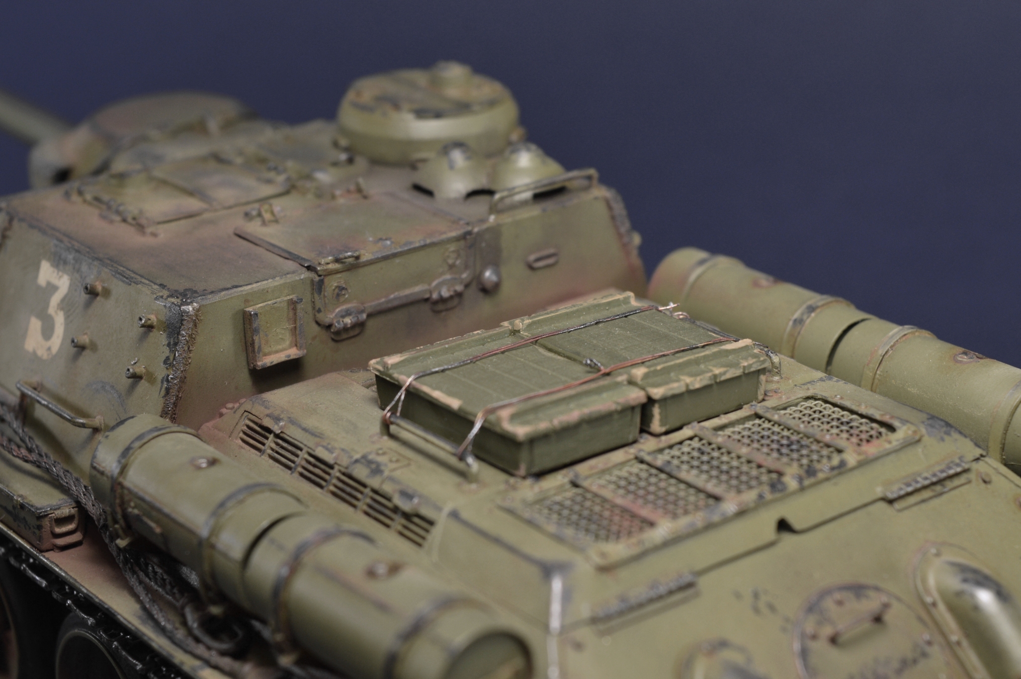 Но косяк в том, что - "Реальная машина, возможно, поучаствовала в штурмах пригородов Берлина в апреле-мае 1945г." с данной балкой машина не могла принимать участие в штурме Берлина, бо такая модификация появилась в только в июне 1945 года. Разница в том, что основа первых Соток - Су-85 (Т-34/76), а с июня 45-го их начали делать на базе Т-34/85, а там другая балка, и как следствие - нивилирована ступень между верхним бронелистом и балкой. Собсно фото машины первых выпусков - прилагаю, стоит в нашем музее.