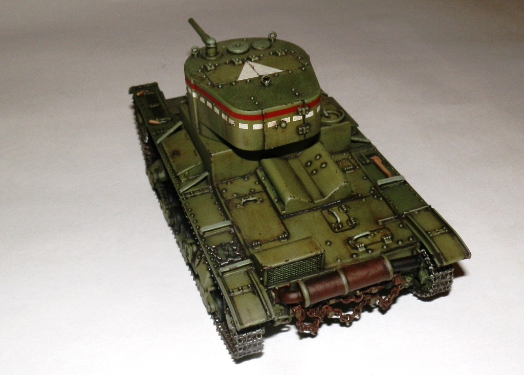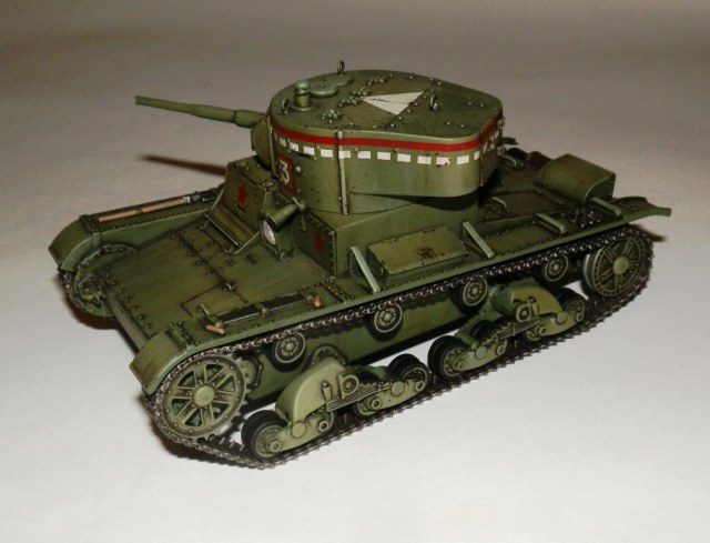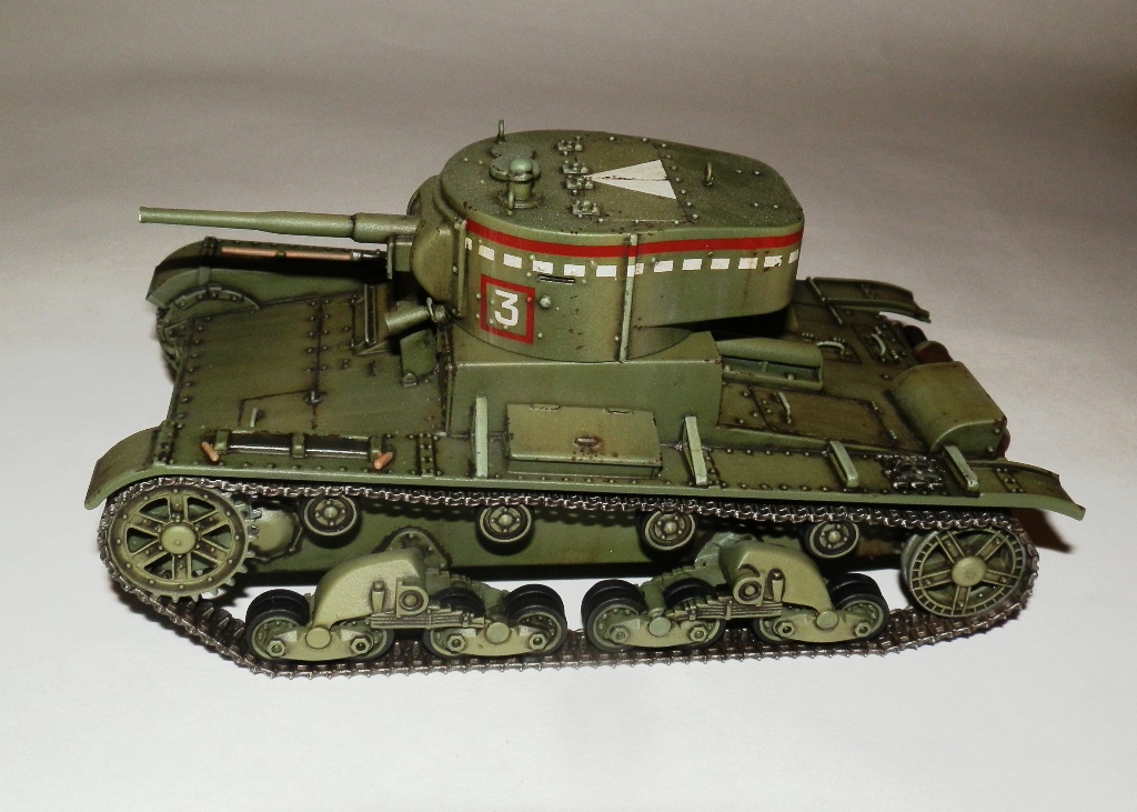 Приветствую Вас, уважаемые Коллеги! Позвольте представить мою модель советского легкого танка Т-26 от Звезды. Исходник, думаю в представлениях не нуждается, тот самый старый перепак Итальери с новыми ведущими и полунаборными траками. Взялся за модель около двух лет назад, пытался что то поправить и доработать. Но в последствии прикупив пару наборов 26-го от ХоббиБосса потерял к Звезде интерес и ушла она в дальний угол.