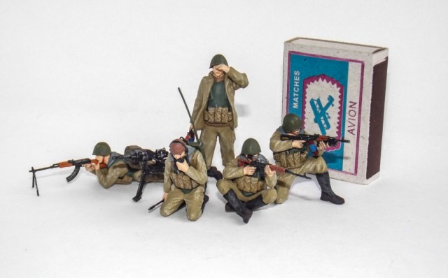 Особо описывать не чего. Фигурки чисто из коропки, красил кистью, красками от "звезды". Попытался придать им "пошарпанный" вид, насколько удачно получилось судить вам. Сразу поясню что лица пока у меня не особо получаются. В некоторых местах немного отступил от инструкции по цветам окраски, так мне показалось будет лучше. Единственное что не из этого набора это гранатомёт АГС-17, он из другого набора но тоже от "звезды". Небольшая доработка к АГС-17; высверлил ствол и сделал пустую ленту с другой стороны от барабана с гранатами.