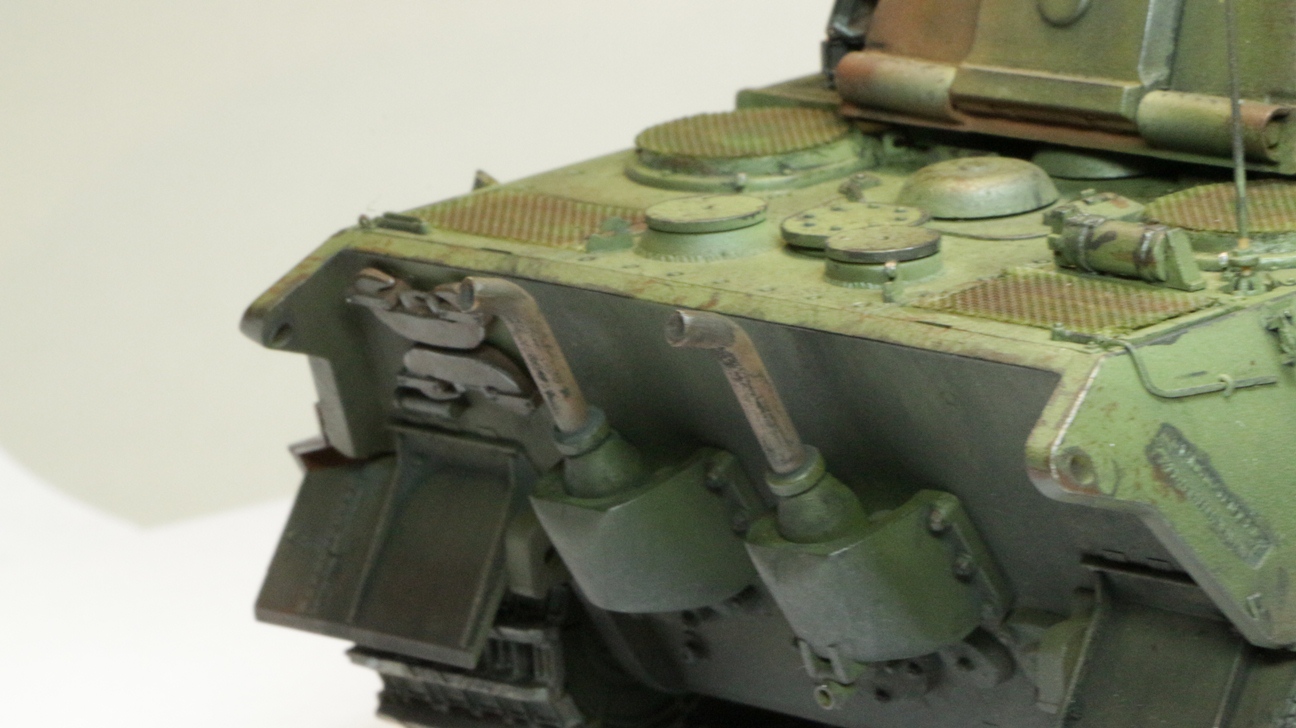 Спасибо за отзыв! гусеница не прилегает к заднему ленивцу-ну он же не движении-провис,бортовые экраны-пробовал делать из жести,не так повторяют конструкцию , да не понравились они мне , решил поставить эти.Вентиляционные трубки Две длинные трубки