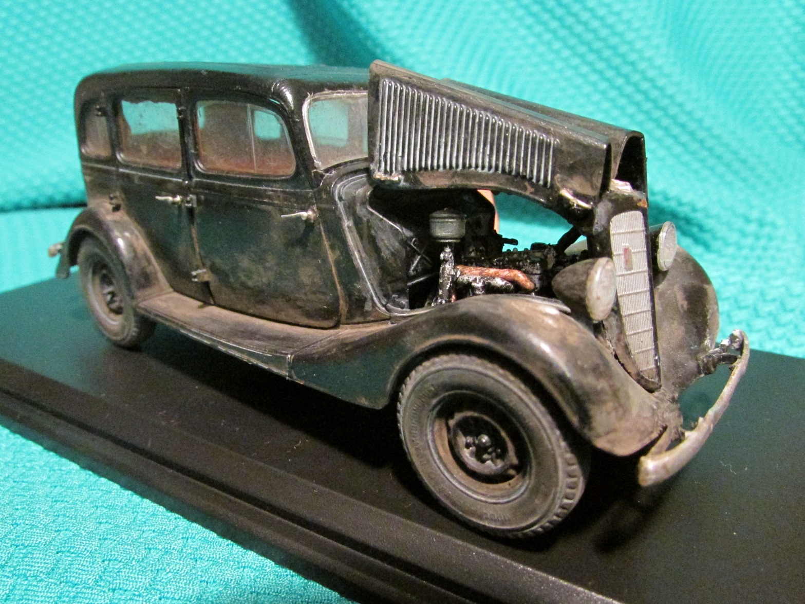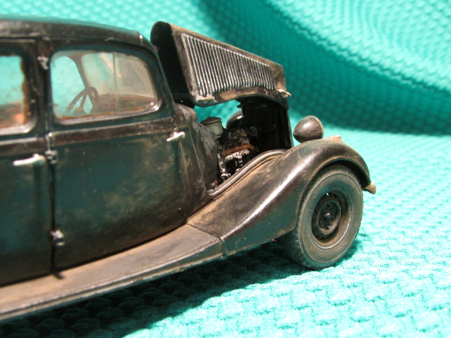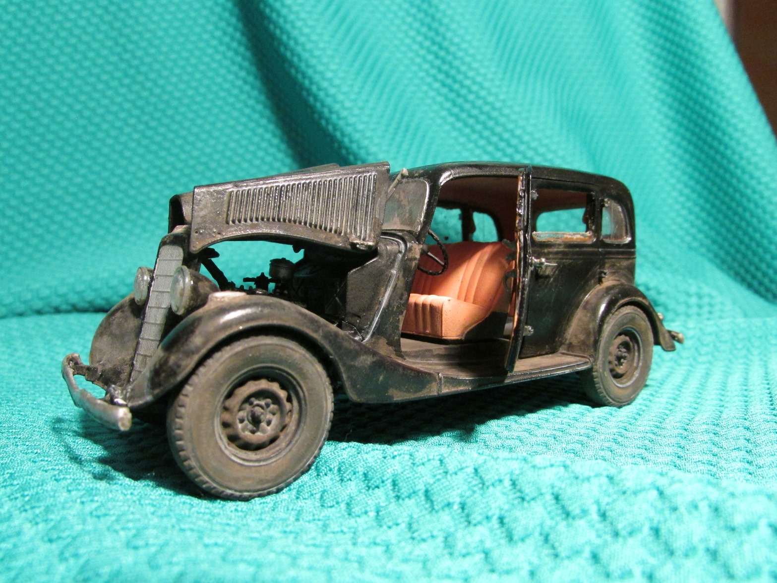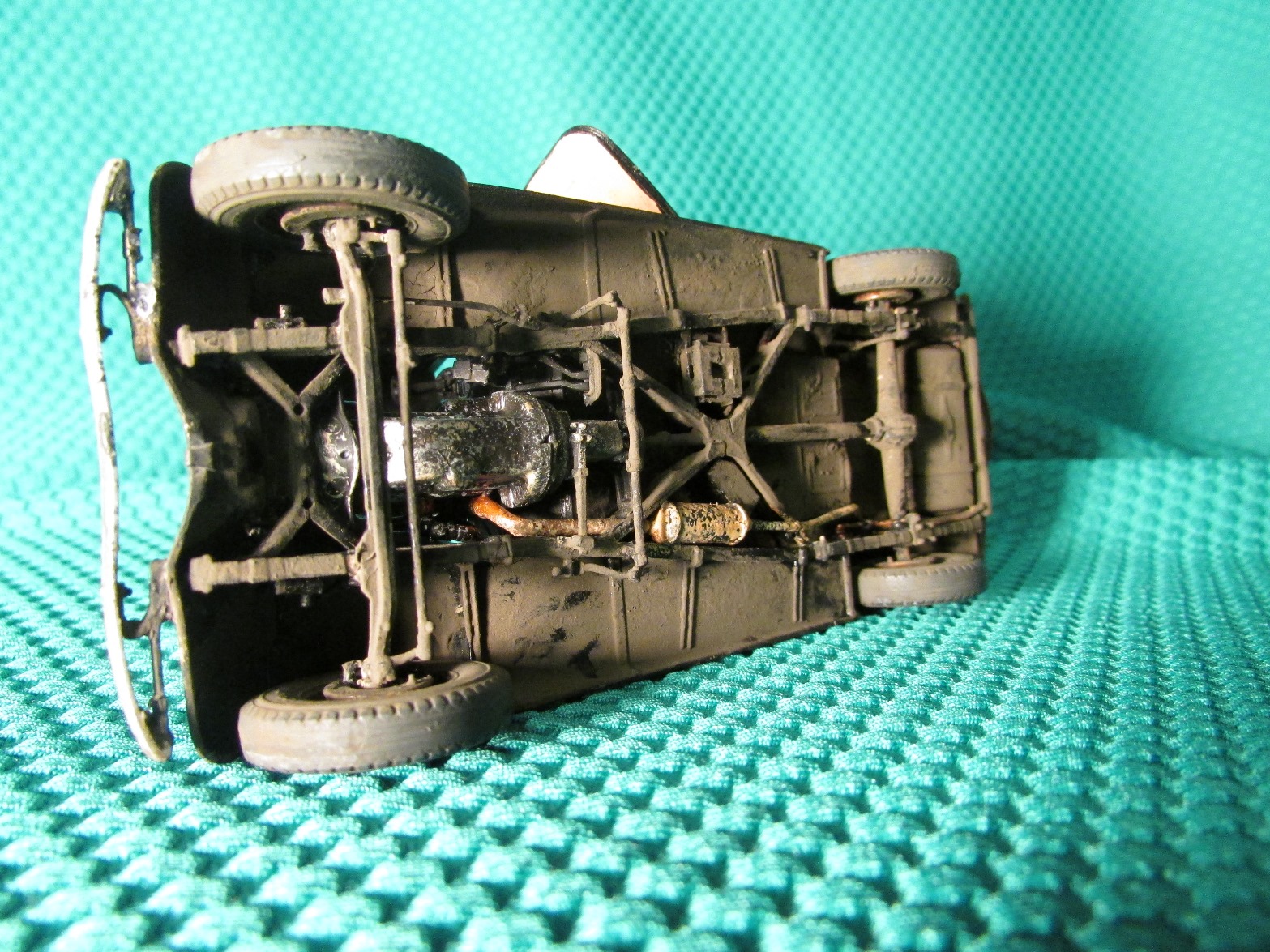 Швы сзади и на крыше зашпаклевать бы... С такой замызганностью на диорамку бы ее. Отпечатки пальцев местами видны.