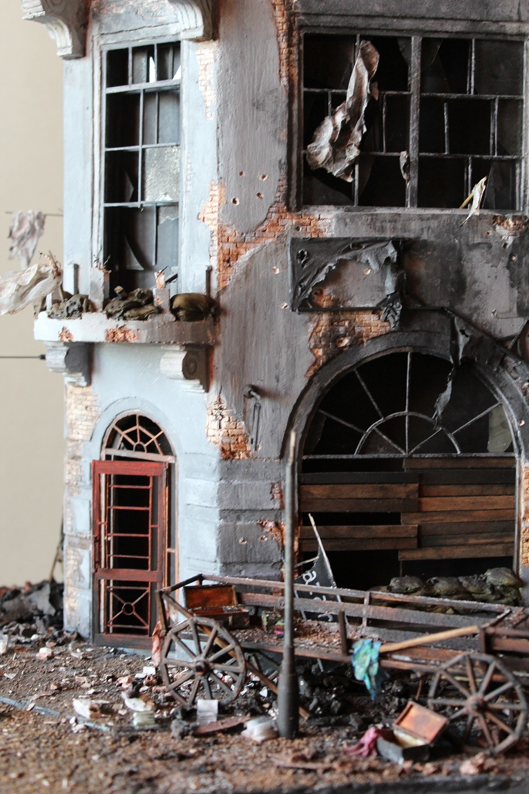 ...Всё здорово,одно плохо-нет общего плана всей диорамы.Фрагменты можно фотографировать со всех углов,а общей картины нет.Толи это улица,то ли это квартал? И белых флагов в окнах нет.