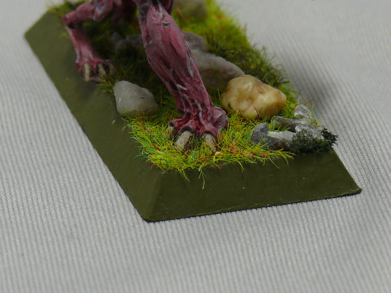 Упаковка - блистер. Отдельно шли: голова, левая рука целиком и правая нога. Остальное было одной отливкой. Склеил суперклеем, зачистив посадочные места. Стыки - шпаклёвка Tamiya. В качестве грунта была использована чёрная краска GW Citadel. Покрашено Звездой, акрил и эмаль. Трава из пакетика для ж/д моделирования и диорам.