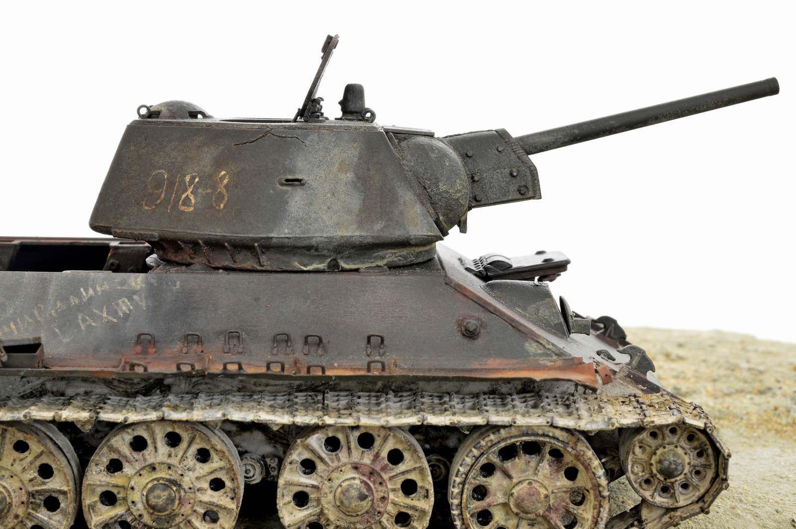 Ввиду этого, можно было бы даже не уделять столько времени работам по тщательной подгонке модели под прототип (хотя, повторить максимально прототип - действительно представляет некий интерес). Тем более, что очень большая часть моделистов (к каким отношусь и я) совершенно не сильны в матчасти Т-34 разных модификаций. И будут замечать лишь то, что явно бросается в глаза. Главное, ведь, в данной работе - везеринг. Просто отличный везеринг.