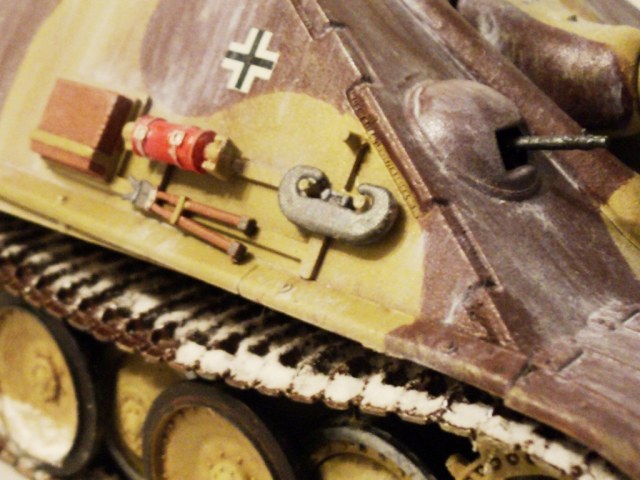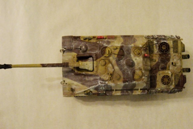 Ну, здесь получается коричневые полосы по заводскому DunkelGelb. Прототипом окраски послужила вот эта схема (см. прикрепленный файл) - Западный фронт, "Рурский мешок", март 45го.