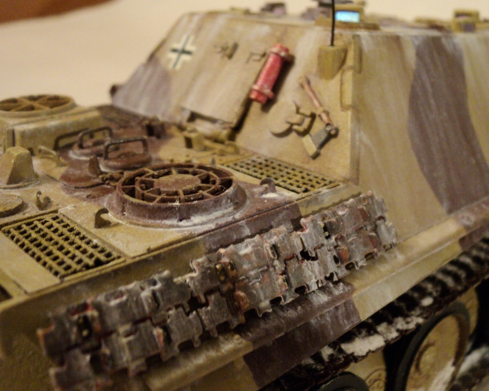 с зимой думаю, лучше смыть, вместо нее запудрите пылью, или густой грязи (весенней распутицы) на траки добавьте, но главное перефоткайте, а то заклюют (сфоткать - задачка еще та - сфоткать так, чтобы модель вышла как минимум не хуже чем она есть