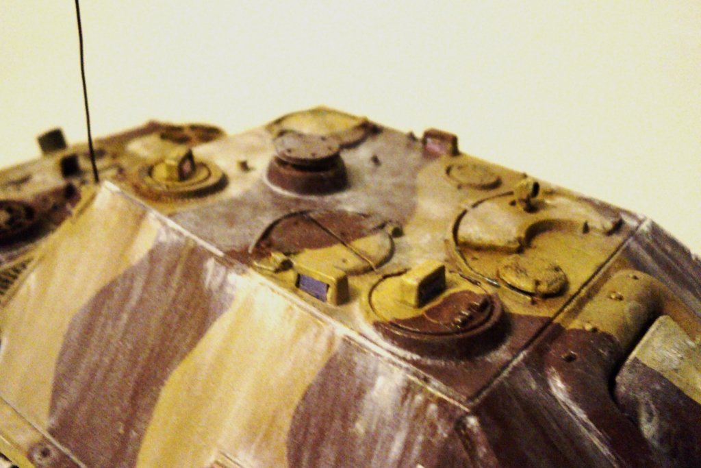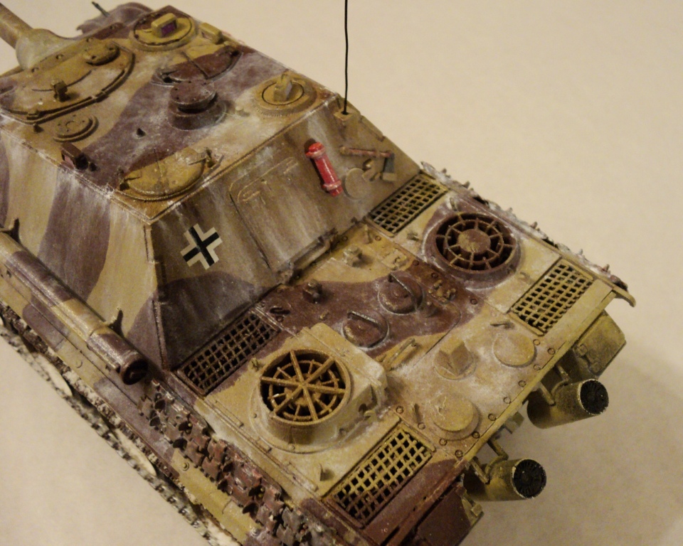 В процессе сборки модель дополнил "бронестеклами" смотровые приборы (вырезаны из старого CD), решетками МТО (из шлифовальной сетки), антенной из медной проволоки. Красил кистью, акриловыми красками; остатки зимней окраски имитировал с помощью масла. Модель покрыл матовым лаком.