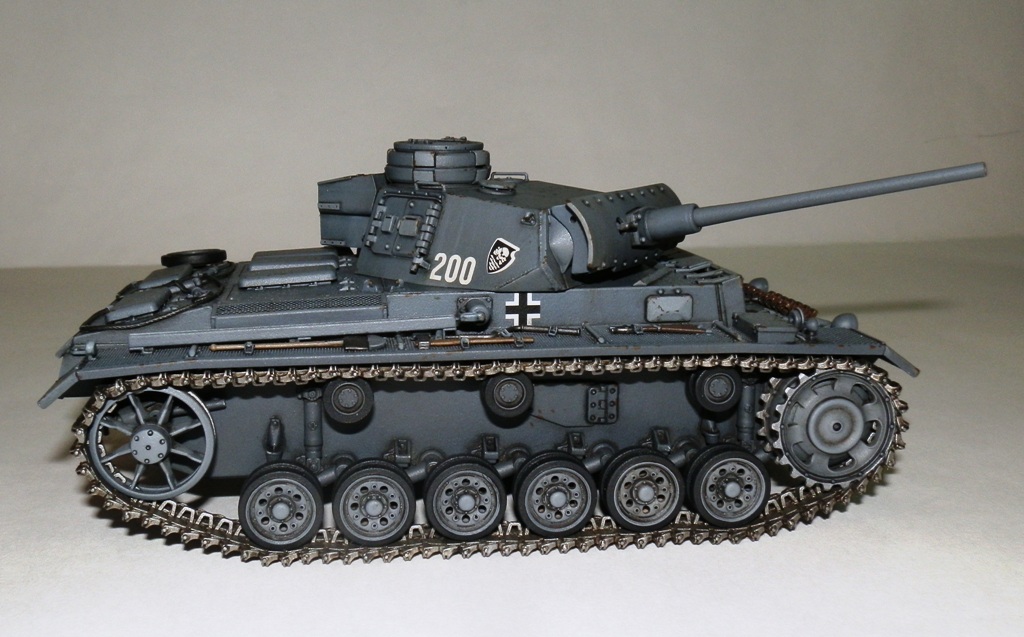 Сходу угадал автора. Замечательный панцер, тройка мне сегда нравилась... Но не слишком ли яркий панцергрей вышел?