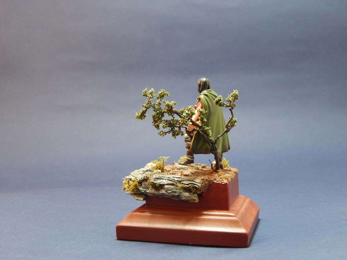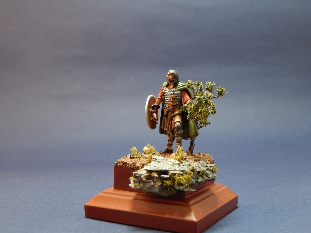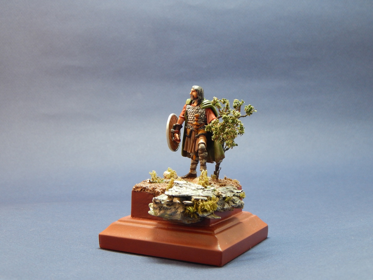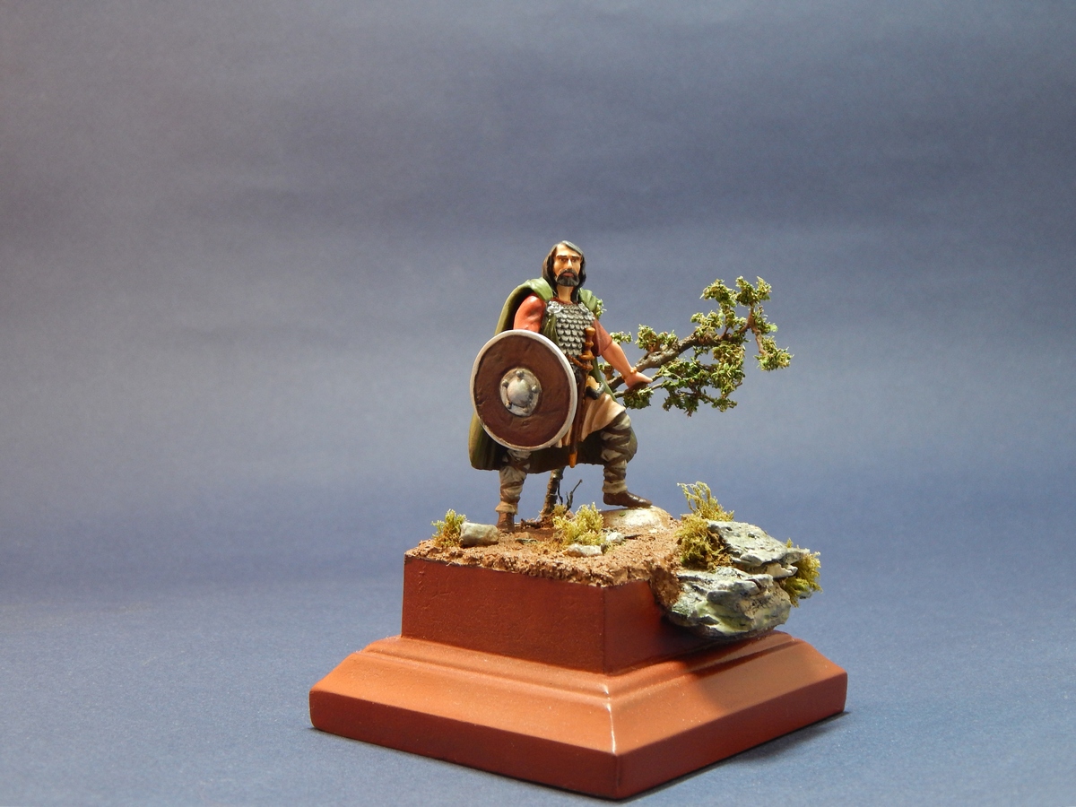 Стандартная поза меня не устраивала. В результате было решено вручить щит валийцу в руку, а свободная рука как-то сама собой ухватилась за ветку.