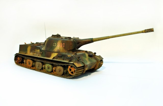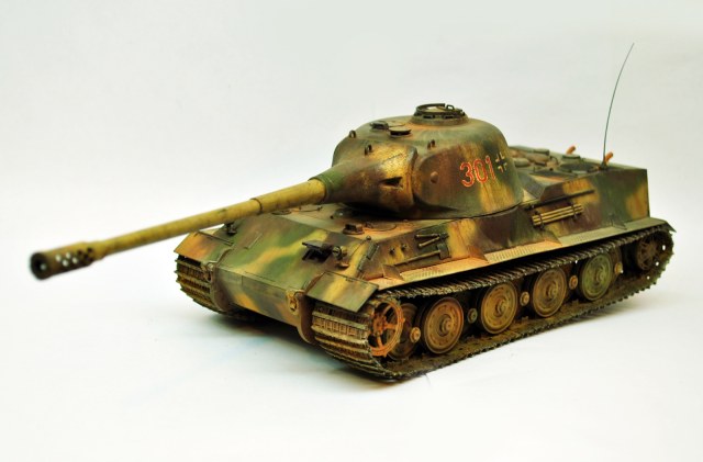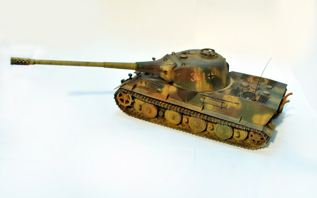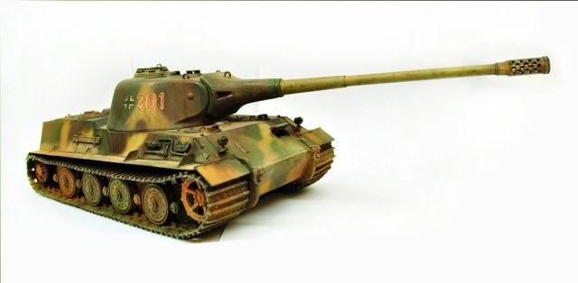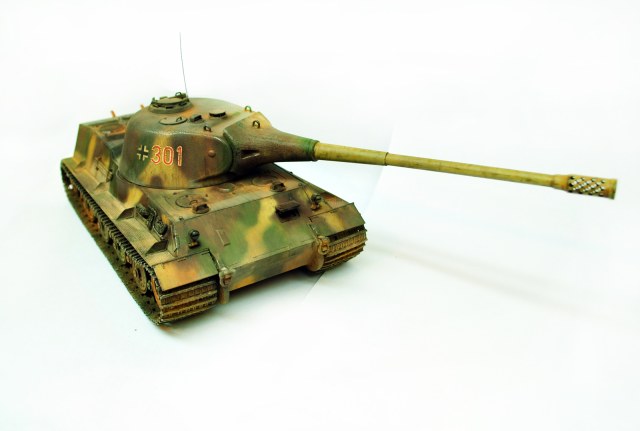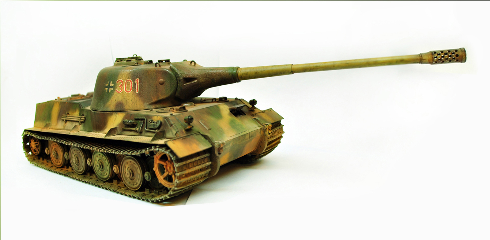 "Лев" от Амюсинг Хобби, вполне достойная модель, отражающая, как мне кажется, всю сумрачную мощь немецкого танкостроительного гения. Впечатление немного портил маленький ствол орудия данный в комплекте, поэтому я его заменил на более приличный калибр.