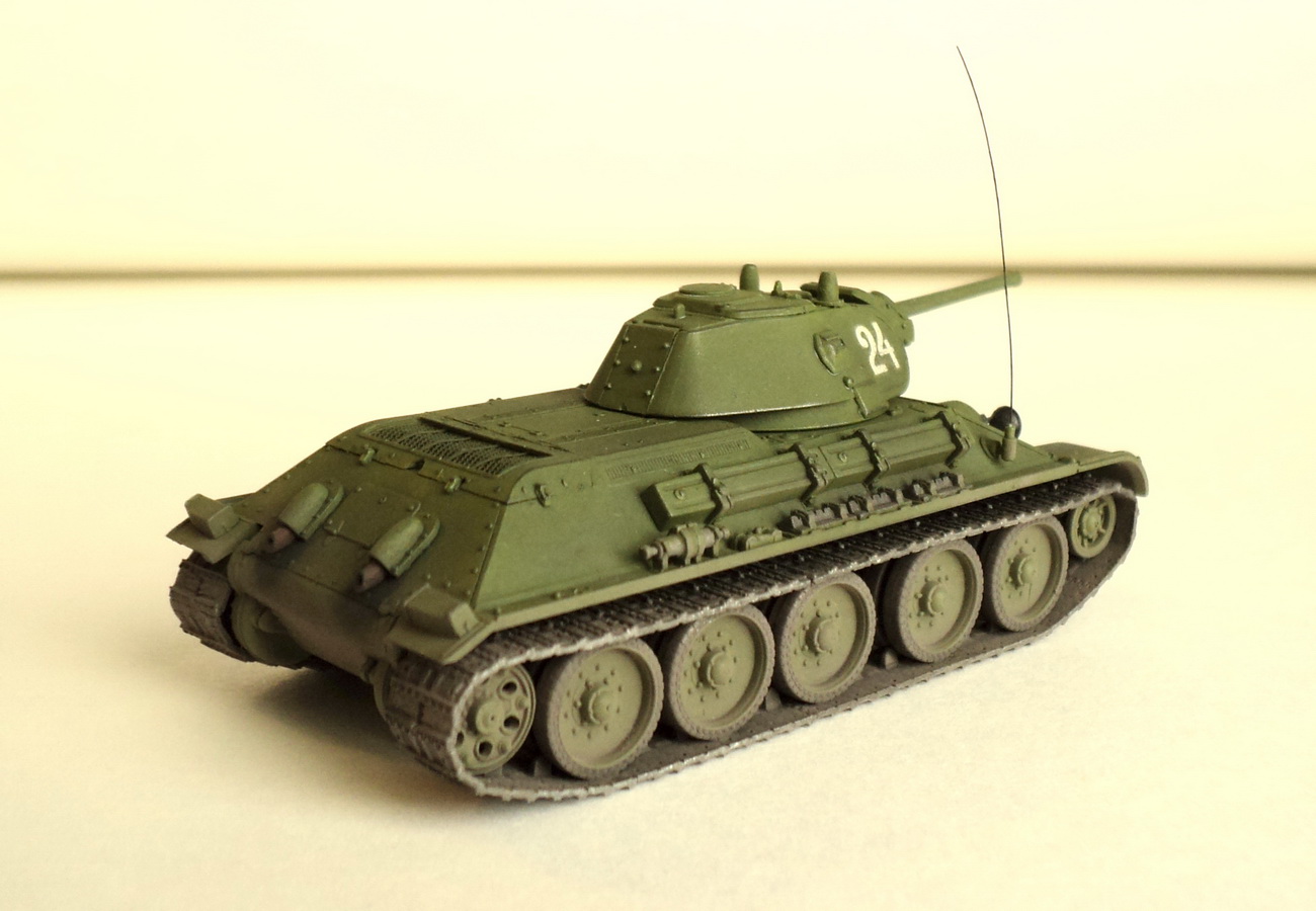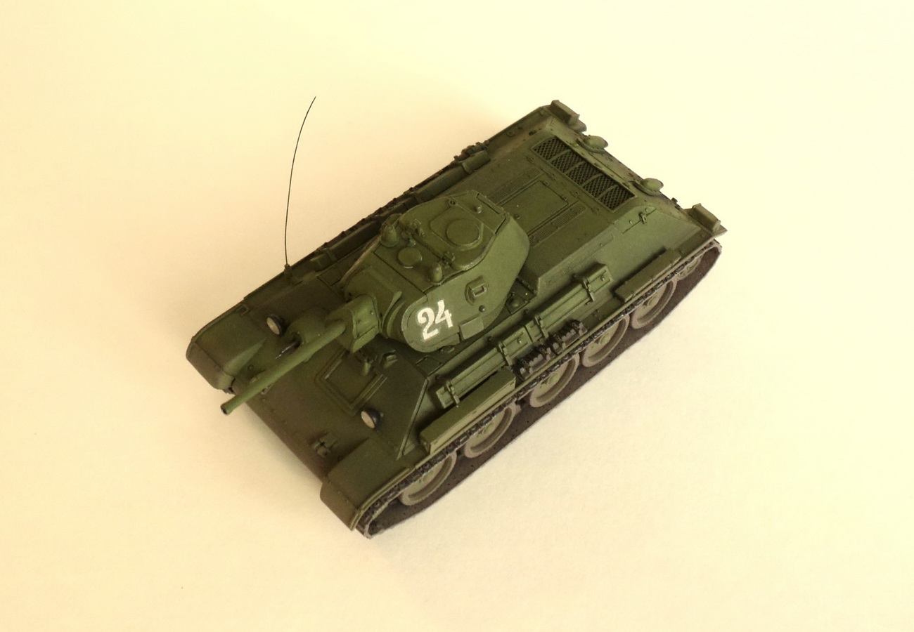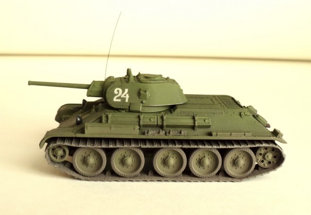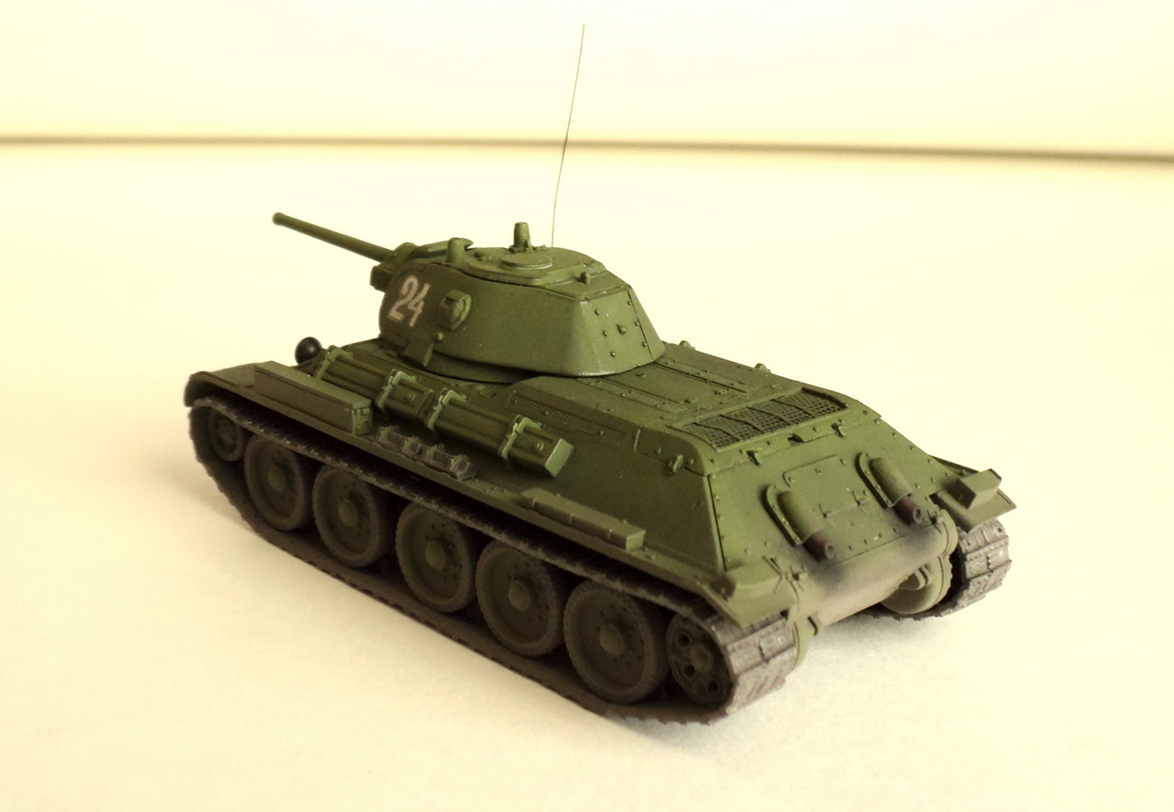 Известная модель Dragon, которая является отличной альтернативой модели от UM. Сборка изкоробочная и протекала легко. В обзорах на зарубежных сайтах в комплекте должны были быть гусеницы раннего типа, но мне попались поздние - вафельные. В связи с этим были куплены смоляные гусеницы OKB Grigorov, но качество этого набора было не очень хорошее - более-менее справился с ними. Также заменил фары на Elf.