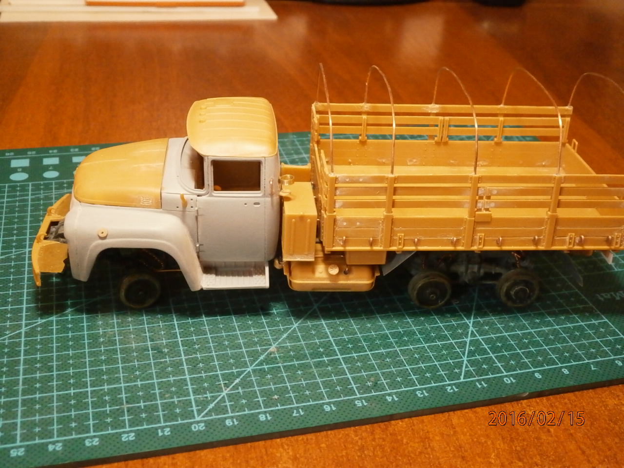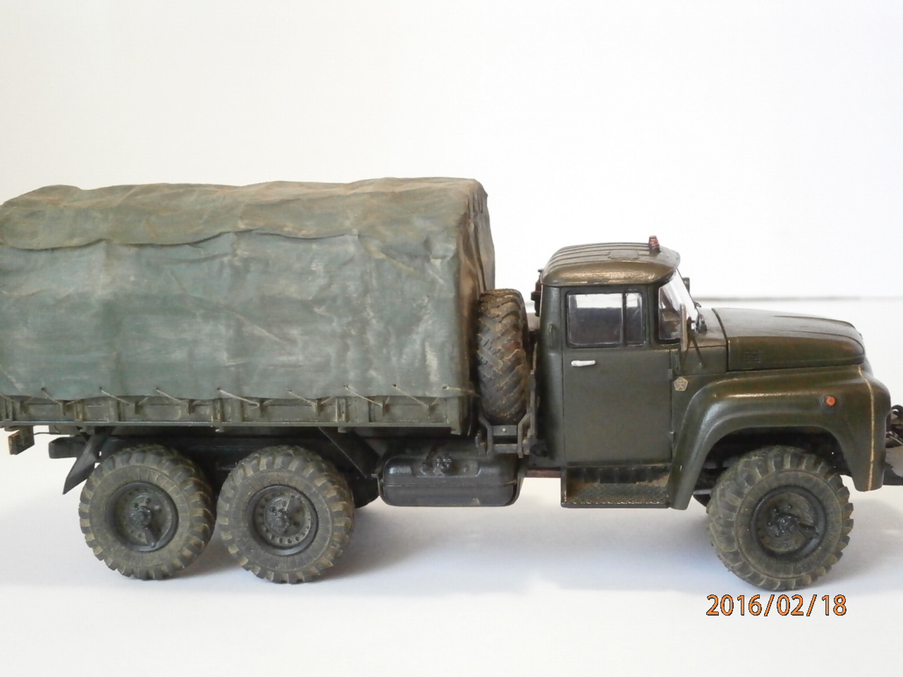 на мой взгляд, можно было бы покрасить оси "захаровских" колёс в один цвет, а морду и кабину 130-го ЗиЛ-а - в другой. И, опять же на мой взгляд, бампер можно было б посамоделить под "захара". И было бы --- "вот подобрали с обочины и соединили воедино"!