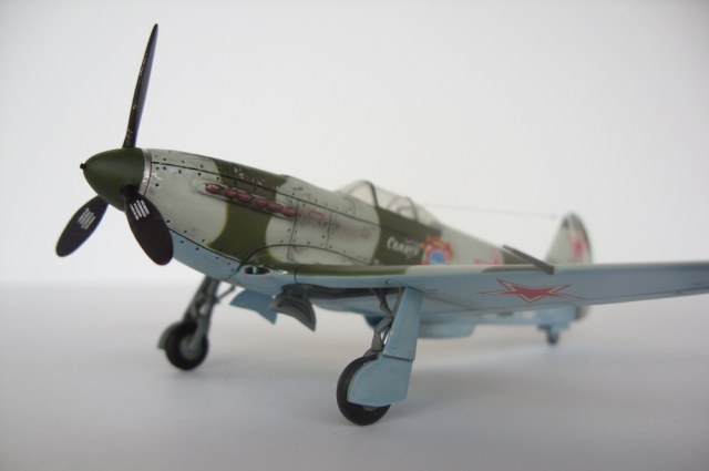 Доброго всем дня! Представляю на ваш суд модель советского истребителя Як-3 от Звезды. Сам набор описывать не буду, он хорошо всем известен. Собиралась данная модель без доработок. Собирал и грунтовал племянник, за мной только краска и все остальное. Косяк с декалью вышел, точнее неправильное позиционирование по правому борту надпись: "Семену Роговому". Перебор со сколами как всегда из за жадности. В первые попробовал нанести следы эксплуатации. ну и далее все как обычно: краски тамия, грунт и лаки мр. хобби. Пожалуй можно приступать к конструктивной критике:)