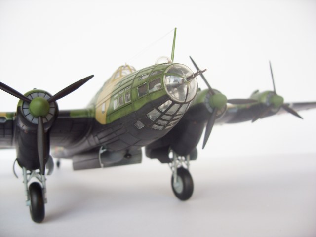 Вы знаете, а мне понравилась работа! Да расшивка контрастная (можно было серой смывкой поработать), но очень аккуратная модель, особое внимание автор уделил мелочам - стойки шасси, остекление, стыки капотов, АНО, антенны стволы и пр. Мне такое внимание к мелочам очень нравится, а с учетом габаритов и четырех моторов - 5!