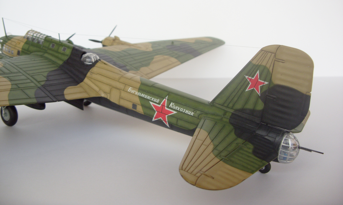 Опять крой портит вид красиво собранной и покрашенной модели. Кстати, данный самолет никогда не назывался ТБ-7. Да и вообще Звезда здесь накосячила немало.