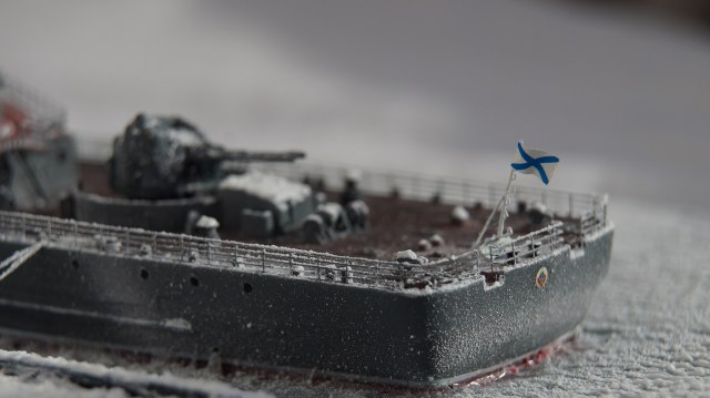 Сразу бросается в глаза отсутствие снега и наледи на палубе,понятное дело, тут же дадут "приборку на верхней палубе",но в любом случае будет снег, хоть немного,но останется.Но в целом,смотрится очень круто!