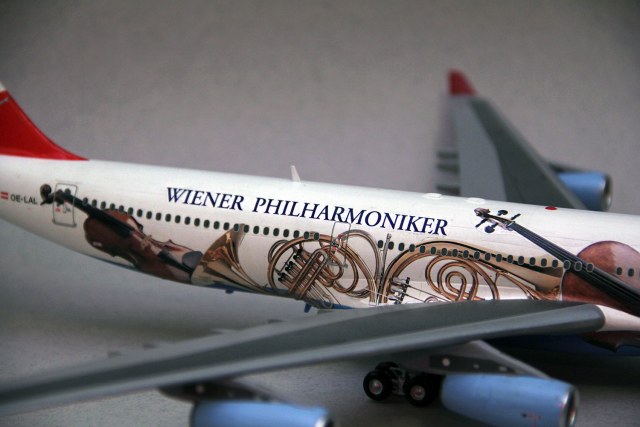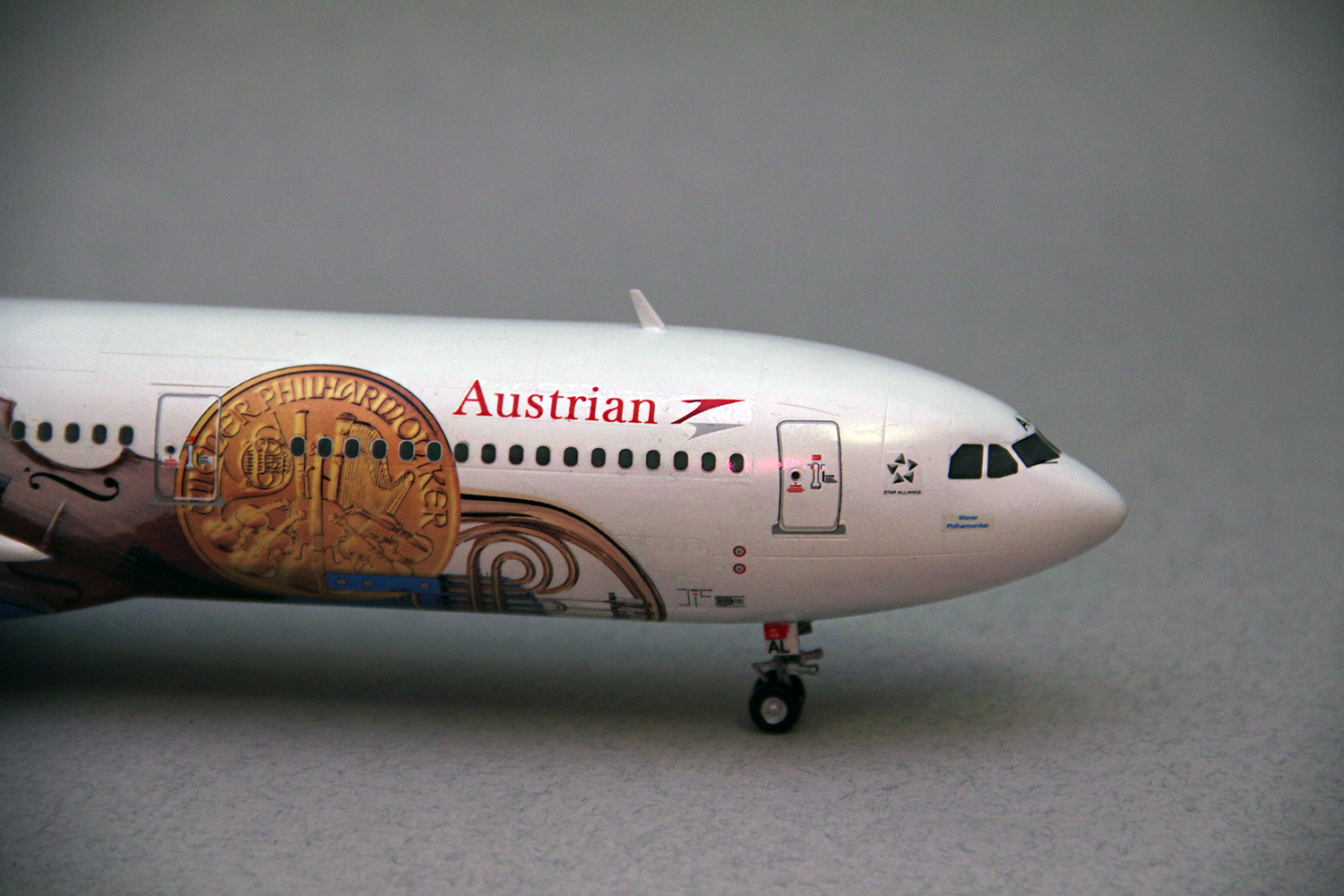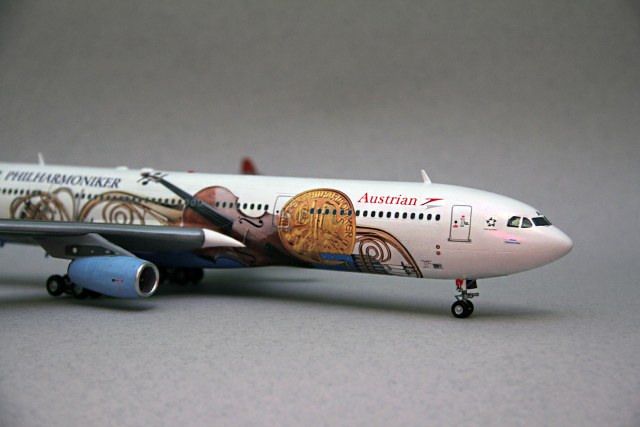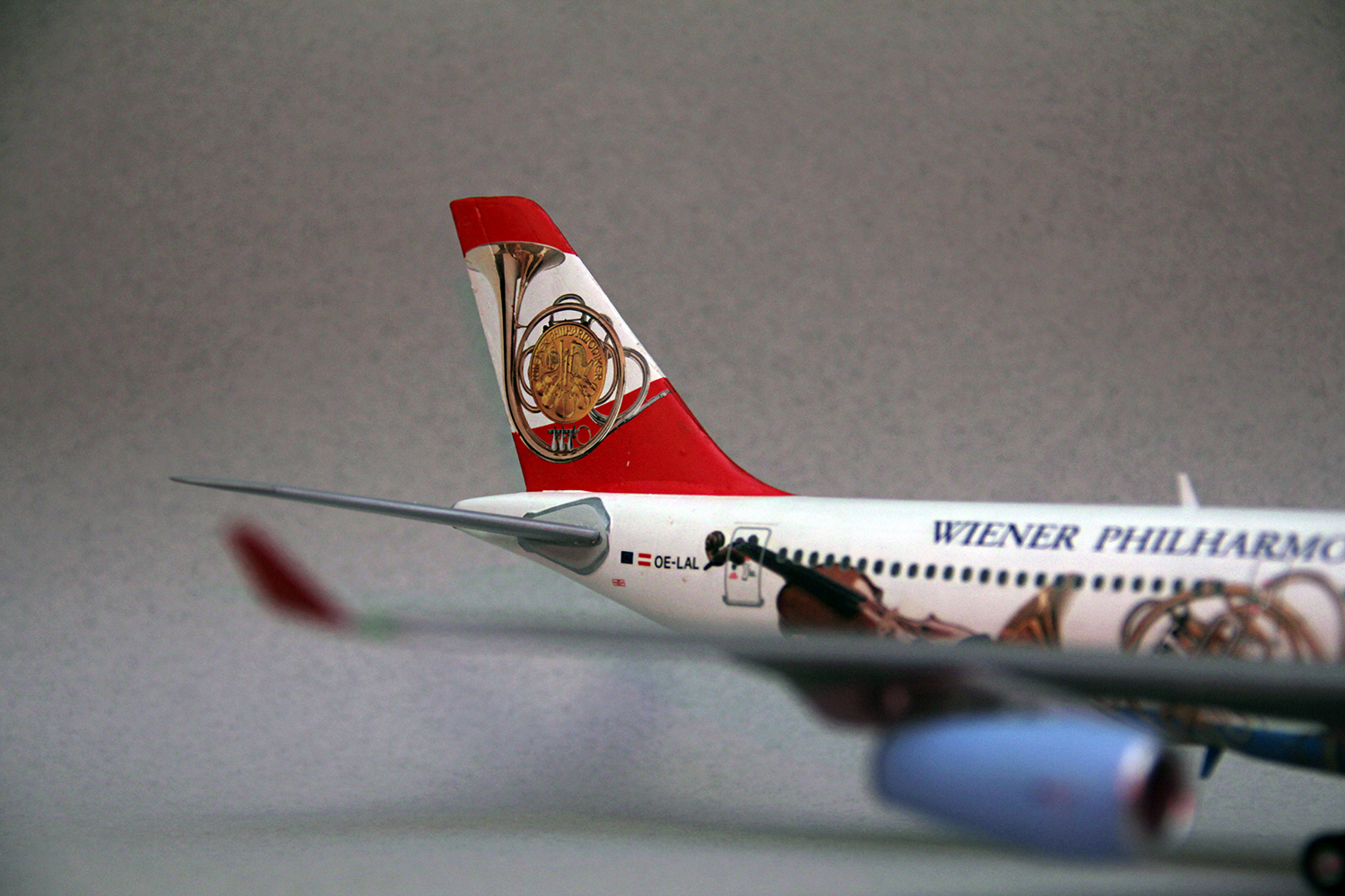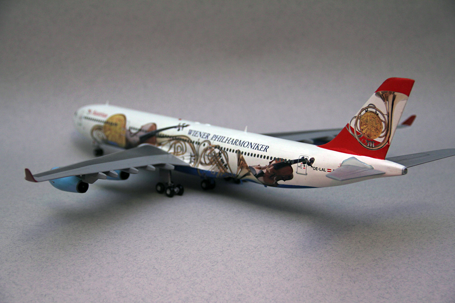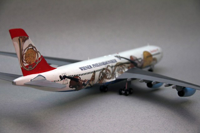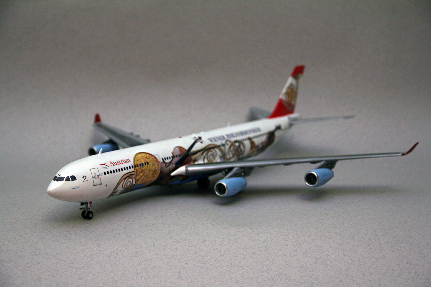 Модель постройки примерно зимы 10-11. Популярный набор от Ревелл, имеющий в коробке декали на Венскую Филармонию и SAS. Даже при большой любви к Скандинавским Авиалиниям невозможно удержаться и не сделать именно этот австрийский борт :)