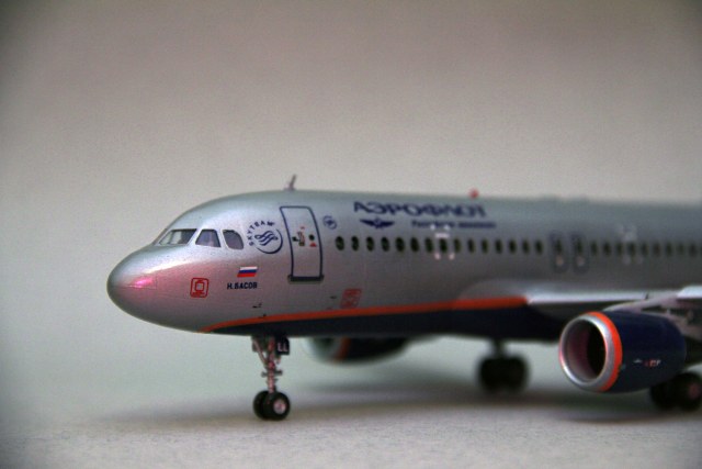 Имея опыт сборки такого же, скажу честно, работа супер, безумно понравилось остекление кабины. Маски для кабины сами изготавливали или жидкие использовали? И еще хочу поделиться своим наблюдением, заметил, что на всех Airbus-320 у Аэрофлота помимо двух больших логотипов skyteam рядом с остеклением кабины, есть дублирующая небольшая справа от передней левой пассажирской двери, возможно это связано с тем, что посадка осуществляется именно через этот вход. На правой двери skyteam не дублируется, но Звезда предлагает его туда наклеить, убрал её в последний момент перед лакировкой