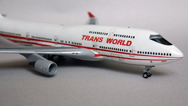 Ещё хочу поделиться вымышленным бортом авиакомпании TransWorld Airlines. Увы, предприятие закрылось в 2001г и 400ые Джамбо ввести в эксплуатацию не успело.