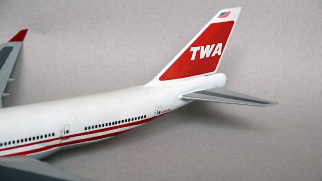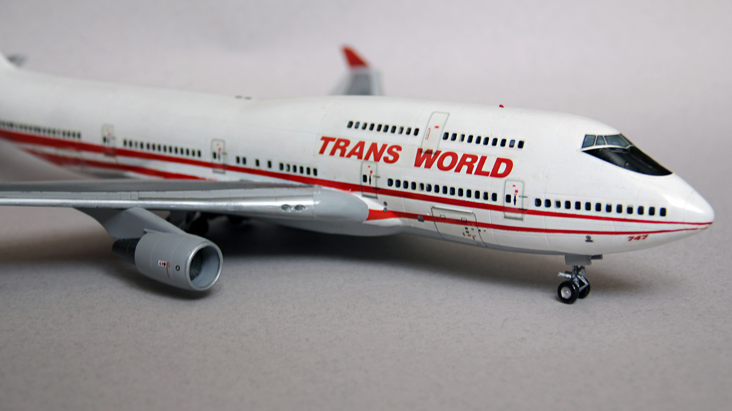 Чисто графически, ливрея выполнена как-то странно. Я очень сомневаюсь, что макетчики TWA сделали бы зализ читлайна на утолщение стыковки крыла и обрубили серый цвет на полпути до финиша.