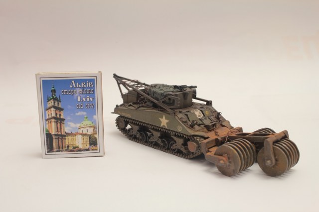 Представляю вам свою модель БРЭМ М32 с минным тралом Т1Е1 в масштабе 1/72 от фирмы UniModels. Модель сама по себе хорошая, но уж очень много мелких деталей( но для фанатов- это только на радость). Доработок не много: все тросики, брезент, ведро, фара+ еще может что то...