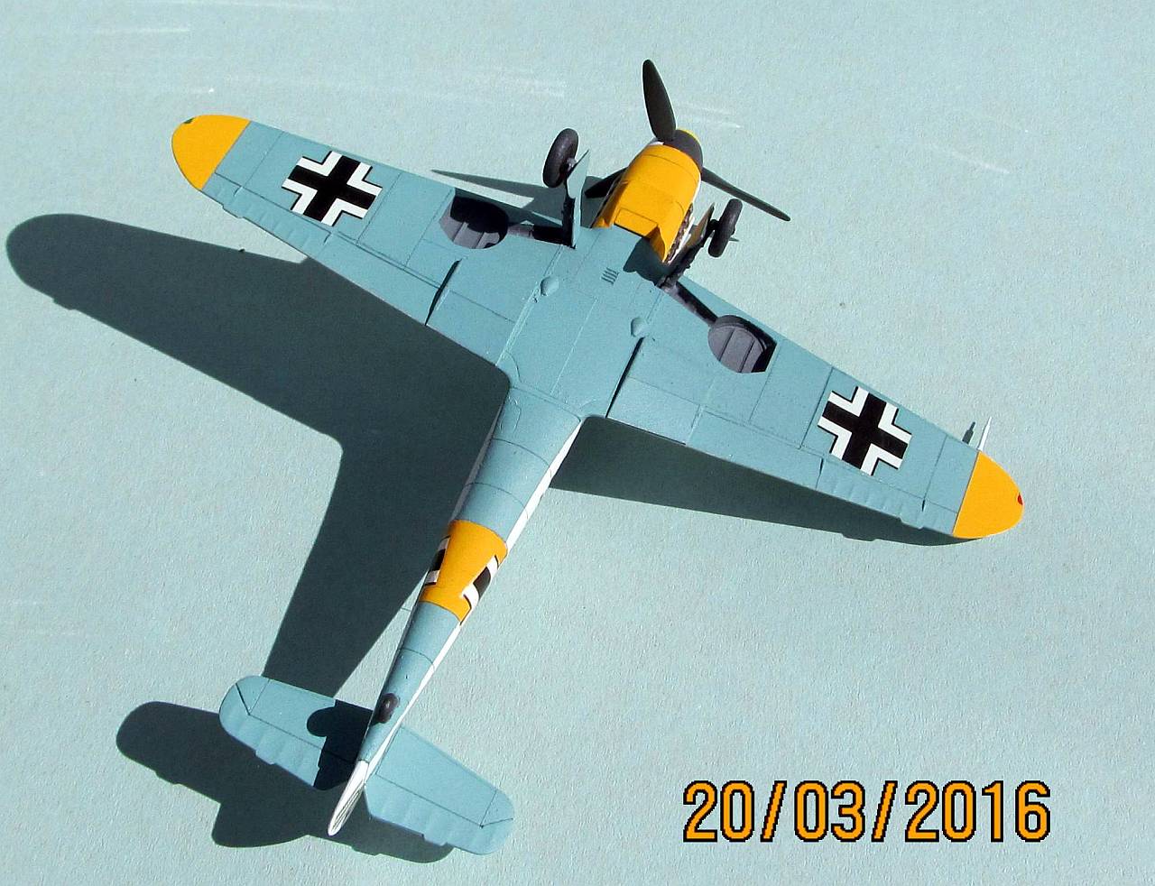 Представляю свой свеженький позор джунглей. Катастрофически невезучий получился самолётик. Купил его ещё в двенадцатом годе, когда набор только поступил в продажу. Именно этого белого мессера я мечтал построить ещё со времён старой италовской модели, но всё откладывал, ждал особого вдохновения. И вот вышел новый, очень хороший набор - отличный вдохновляющий фактор. "Эх, соберу!". Давно уже замечено, по крайней мере у меня: чем лучше собираешься сделать модель, тем хуже она в итоге получается. Вот наглядное тому подтверждение. Черезвычайно долгая сборка, мучительная, в три подхода окраска и досаднейший косяк с расположением жёлтой полосы на фюзеляже, замеченный слишком поздно, чтобы быть исправленным. В итоге- однозначно песочница. Обидно до соплей и попенять не на кого - сам рукожоп.