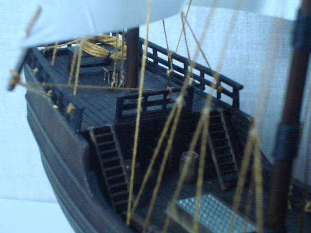 Хотелось бы парочку фото с общим видом (целиком), парусов то практически не видно. Общий образ не складывается. Покраска, кроме алюминиевой решетки, понравилась. Сборка хорошая. А вот такелаж "убил" все впечатление. Мне кажется хорошие паруса и такелаж 70-80 процентов зрелищности для парусника и возможно столько-же по времени в работе.