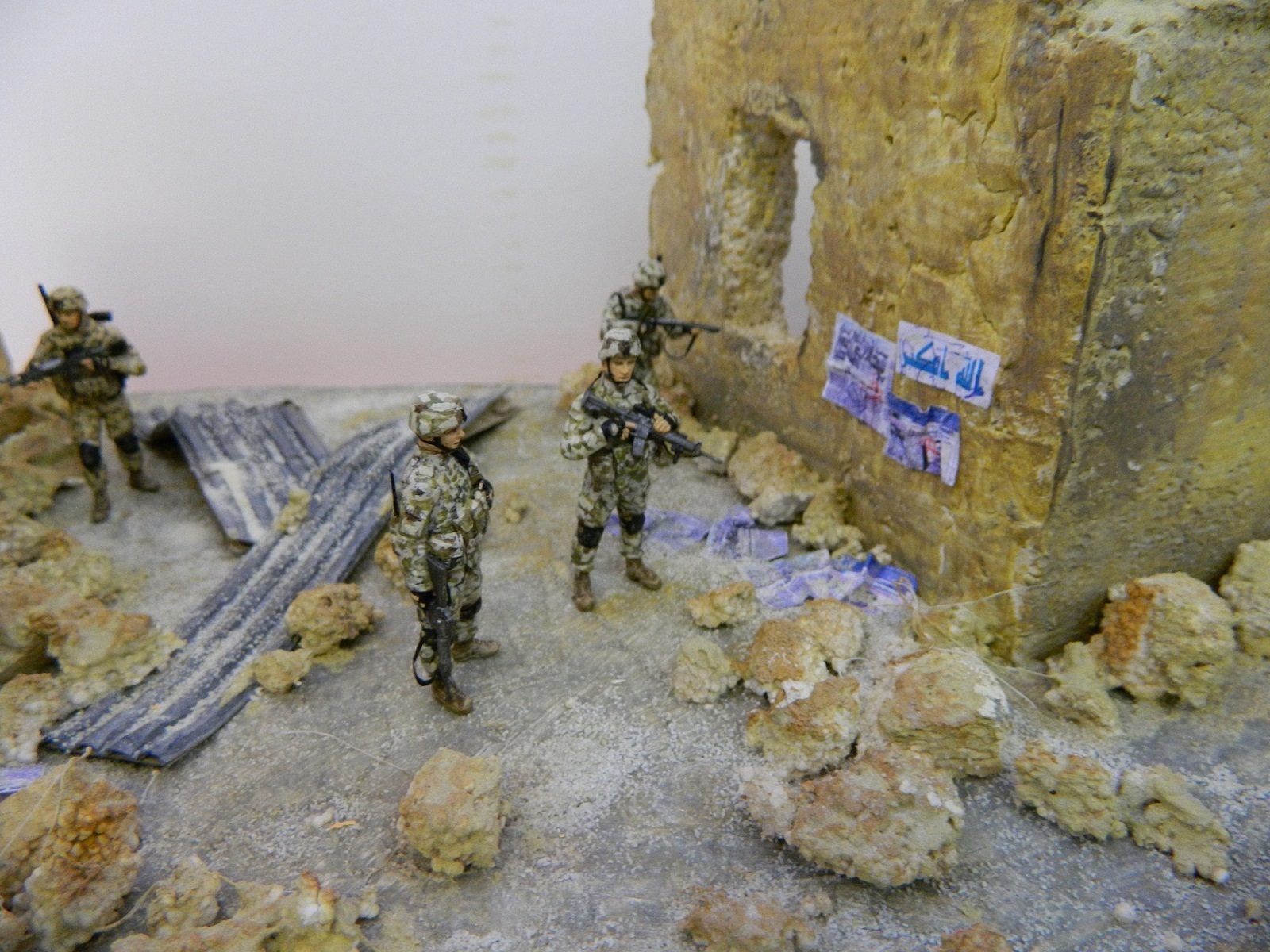 Если перекрасить окружающую местность в красный цвет... То будет "вторжение на Марс". И вот может пенопласт все портит, может ледовая поверхность (или это что ?), но только ираком я бы это не назвал. Камуфляж на бойцах порадовал, хотелось бы понять за образец что брали ? А если серьезно, то много лишнего и все как по линеечке. Разговор бойцов : -"А что мы тут делаем, сэр?" -"ждем подкрепление с собакой, чтобы вывести нас"