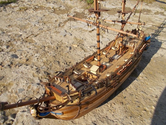 Один год и месяц ушел на постройку данной модели.Много добавил своего,паруса,окрас,такелаж,канаты и тд и тп. Таким и его хотел видеть на то время,cейчас, я конечно бы много изменил. Но поезд ушел))).Cплести канаты самостоятельно,и окрасить паруса с помощью чая -принцеса нури-в следуюшей модели)))). Главное у меня есть уже правда не большой, но опыт,терпение,и желание, чего и вам желаю. С УВАЖЕНИЕМ Д.В.