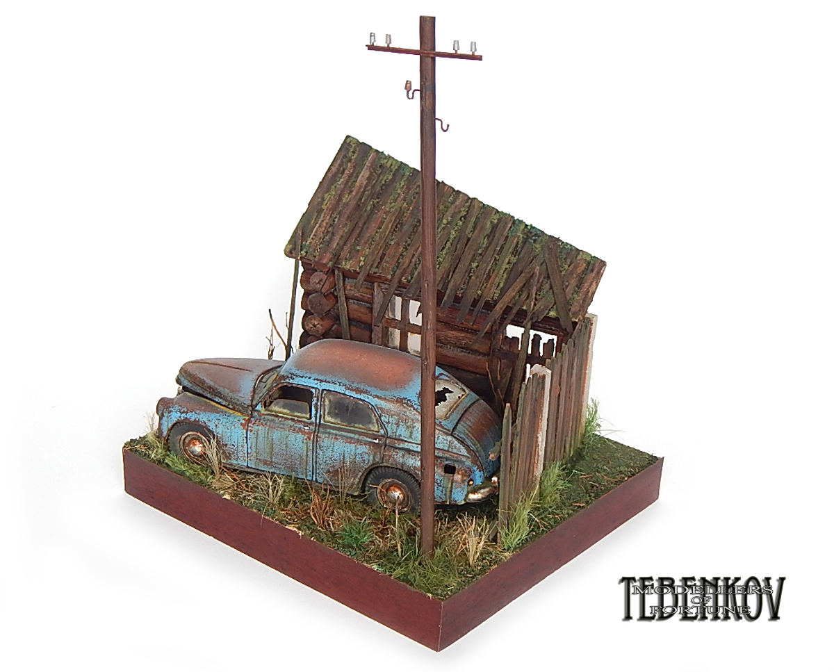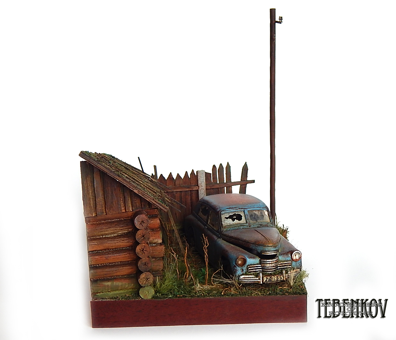 А вот, если углубиться в конкретику, то (опять же по моему субъективному восприятию) нам (зрителям твоей работы) представлены два объекта: загибающийся от старости дом и отслуживший своё автомобиль.