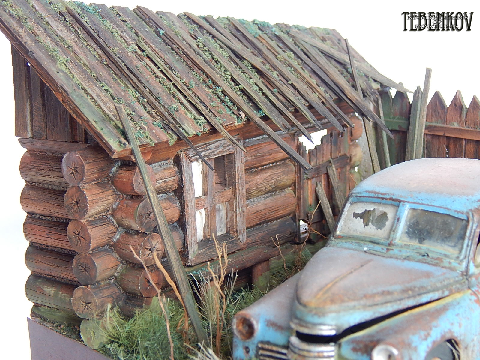сравните торцы брёвен на вашем фото и на вашей диораме