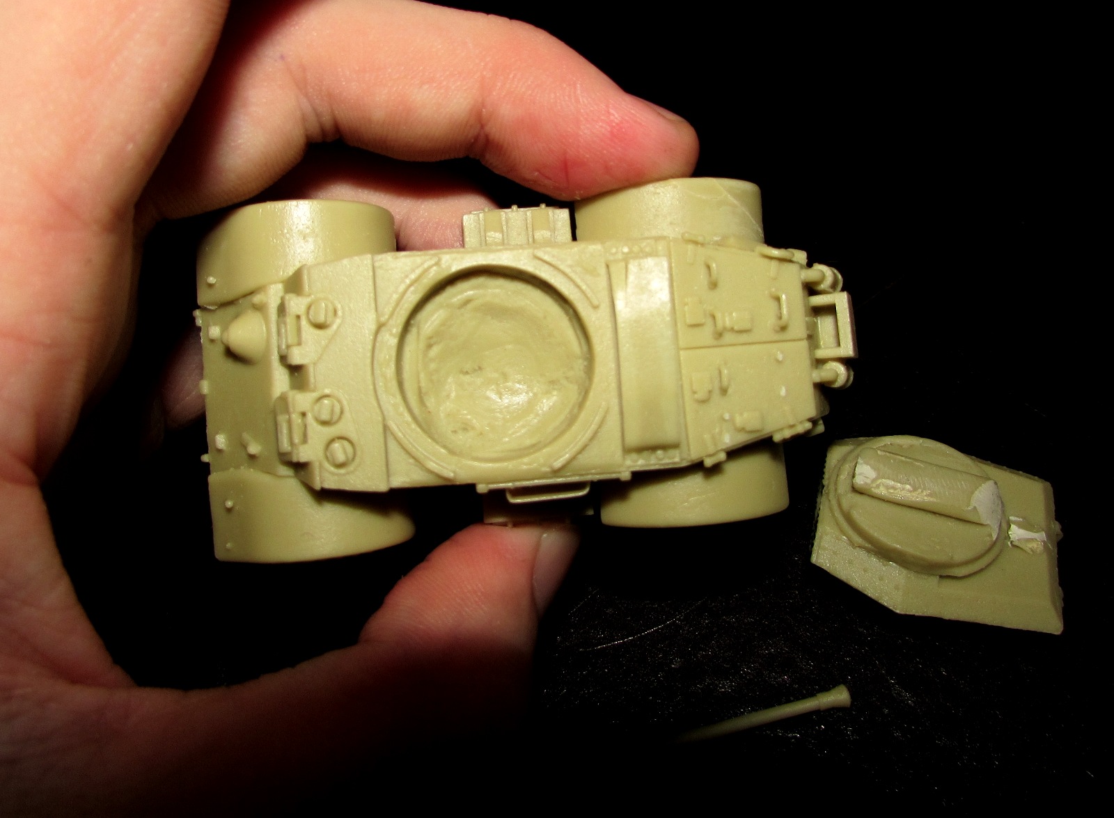 ХЗ, если честно. Даже на сайте (http://www.model-miniature.com/product.php?id_product=120) написано, что модель состоит из 4 частей. Да и не особо кажется, что полусобрано - такое ощущение, что колеса именно как бы "вырастают" из смоляной "какашки". Да, если честно, даже не представляю, что тут можно сделать с ходовой - тут не столько с колесами проблема, сколько чтобы спилить/сточить/стесать вот эту вот смоляную массу. Скорее всего, да, только скрещивать с RPM. Но даже нет особого желания. Скорее, попробую загнать кому-нибудь из знакомых.