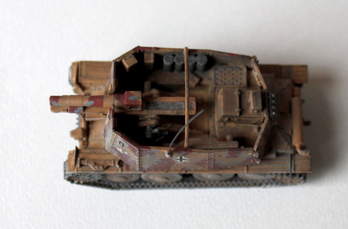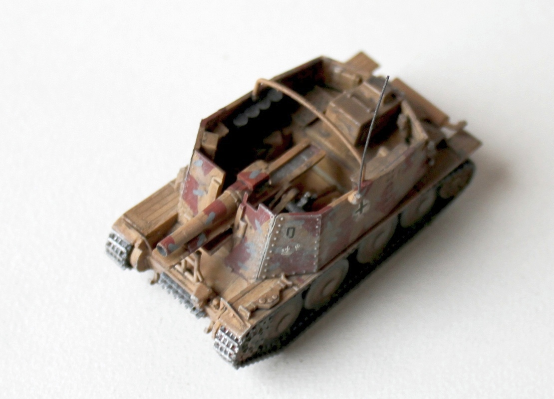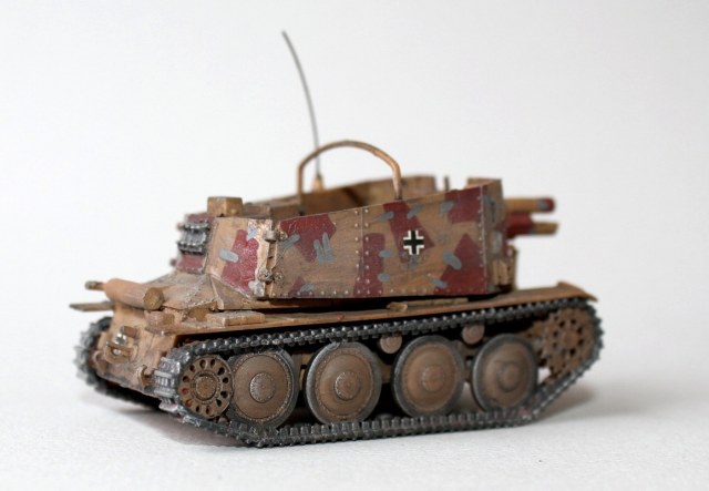 В целом неплохо, органично, но. Покраска немного грубовата, видимо, кисть. Прилипло всякой всячины. Ствол (вид сверху)- виден шов.У гусениц цвет оловянный.