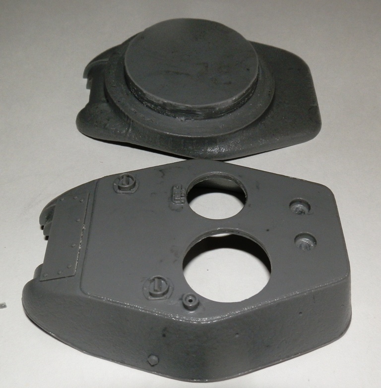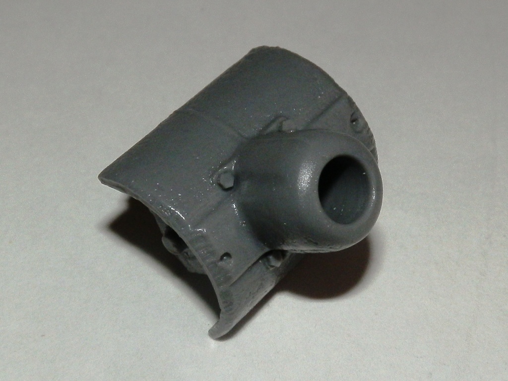 Литье качественное и четкое, хорошо проработаны приборы наблюдения, швы, головки болтов. Неплохо передана фактура литой брони. Что порадовало, есть метки под поручни и монтажные рымы. Далее в наборе присутствует маска орудия. Литье также приятное, есть следы газорезки и стыки литьевой формы и стопорный болт. Ствол в наборе прямой и ровный, проигрывает точеному лишь в отсутствии нарезов в канале. Лично я оставлю его.