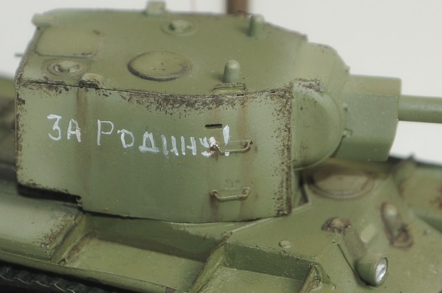 Но зачем-же Вы ему у полок надгусиничных края вверх загнули?... Буксирные крюки у КВ другой формы и гусеницы в один цвет - лично мне не понравились.