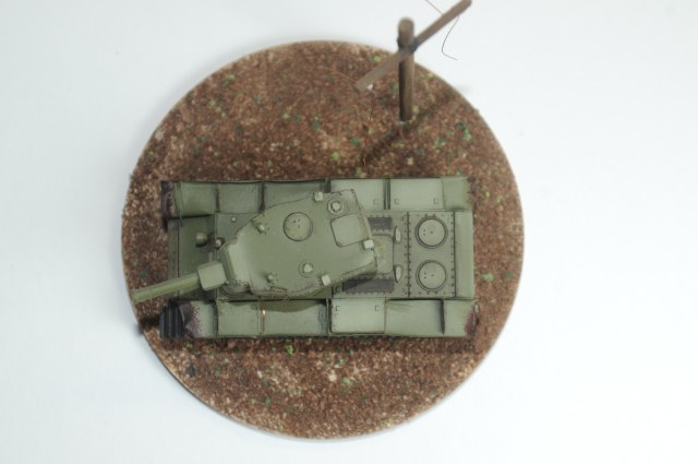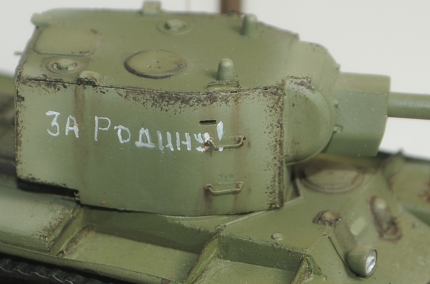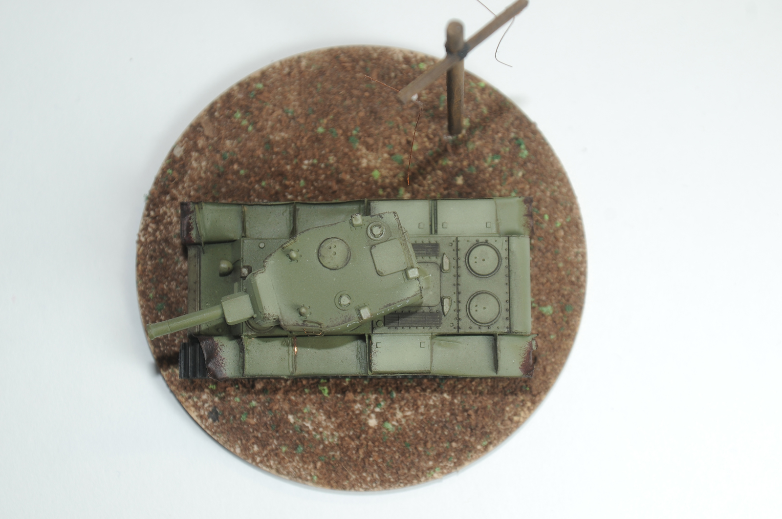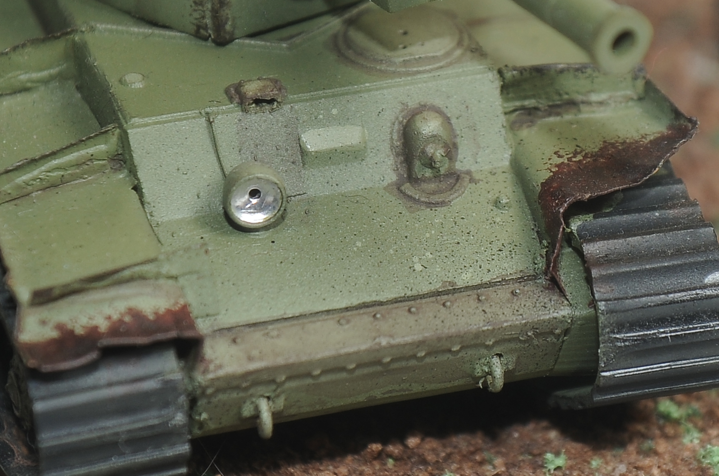 Короче, танк утопить в грунт, катки обгадить, так, чтоб не видно было звездовской мути. А ручечки на башне, фара и сколы очень понравились. Красота!