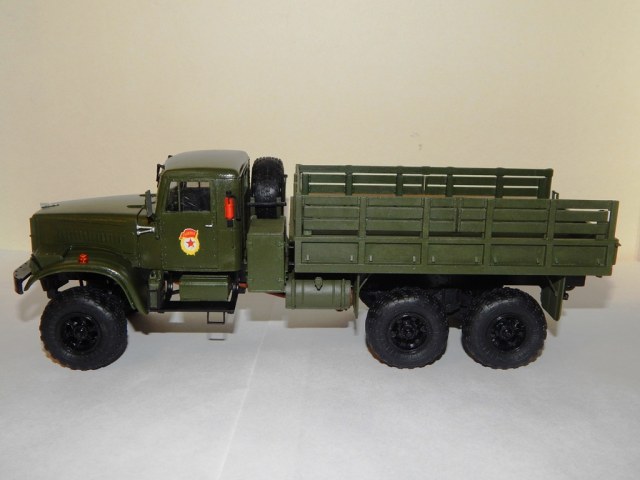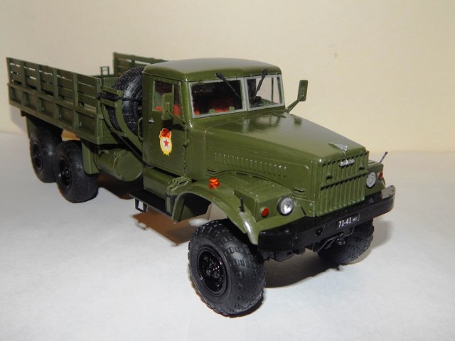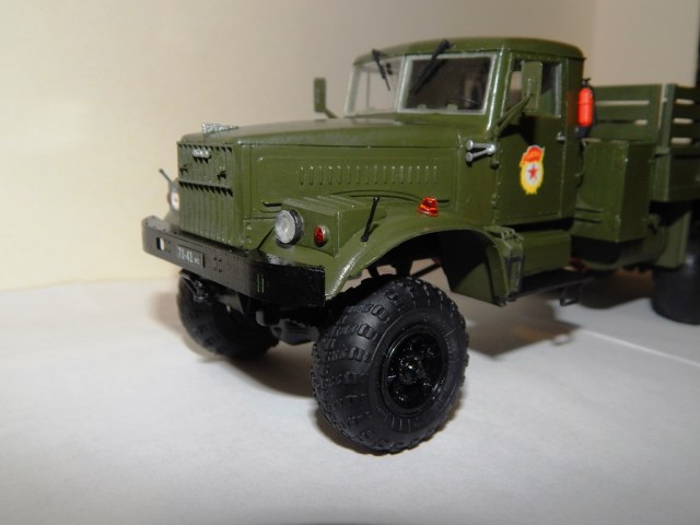Очень красиво, выставочно. Не люблю критиковать, так как сам далеко не мастер, но резину, если честно, все-таки лучше тоже красить. баки в цвет кузова на КрАЗ весьма распространенное явление.