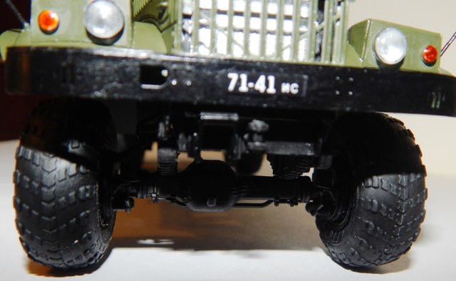 Модель собиралась версией из коробки, ничего не дорабатывал, собирал как есть. Стыкуемость некоторых деталей оставляет желать лучшего. Слишком много члененых деталей, даже чрезмерно, например раздаточная коробка собирается из 12 частей, глушитель тоже расчленен слишком сильно. Самое сложное было поставить кабину - она никак не хотела становиться ровно на крылья, пришлось подтачивать и подгонять, но все равно с одной стороны получилась достаточно большая щель, шпаклевать не стал, так как посмотрев фото прототипов убедился в очень часто ей наличии. Резинки на стеклах тоже выделять не стал, так как по фотографиям они есть не везде, а где-то покрашены в цвет кузова.