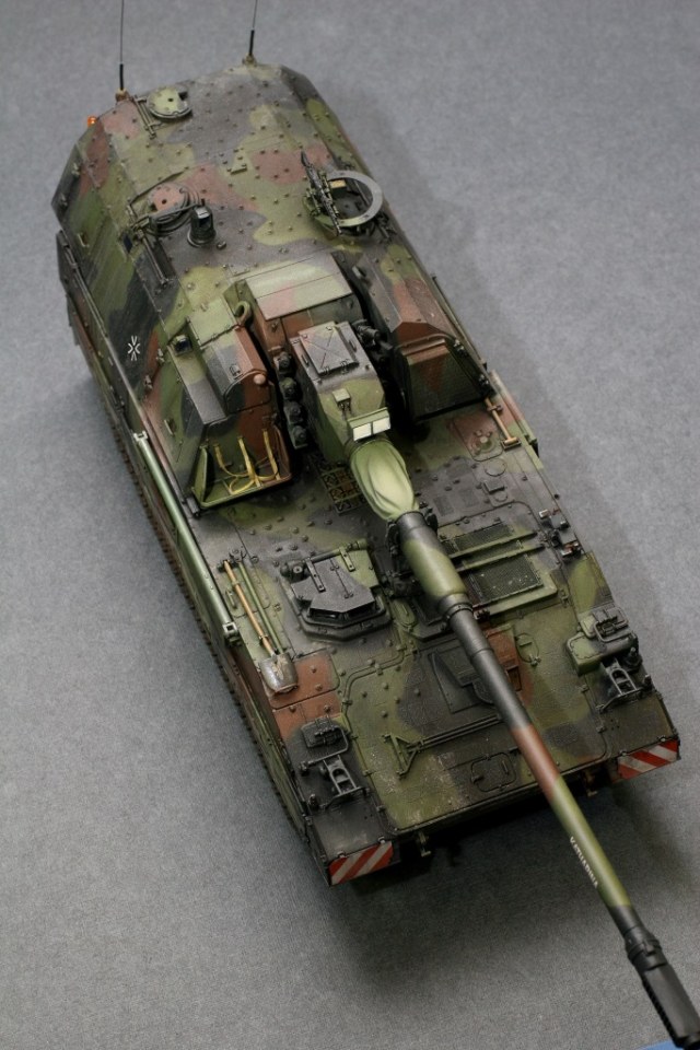 Красил черной и белой грунтовкой для прешейдинга, затем - Тамиевскими NATO Green/Black/Brown, везеринг - смывками МИГ и сухими пигментами.